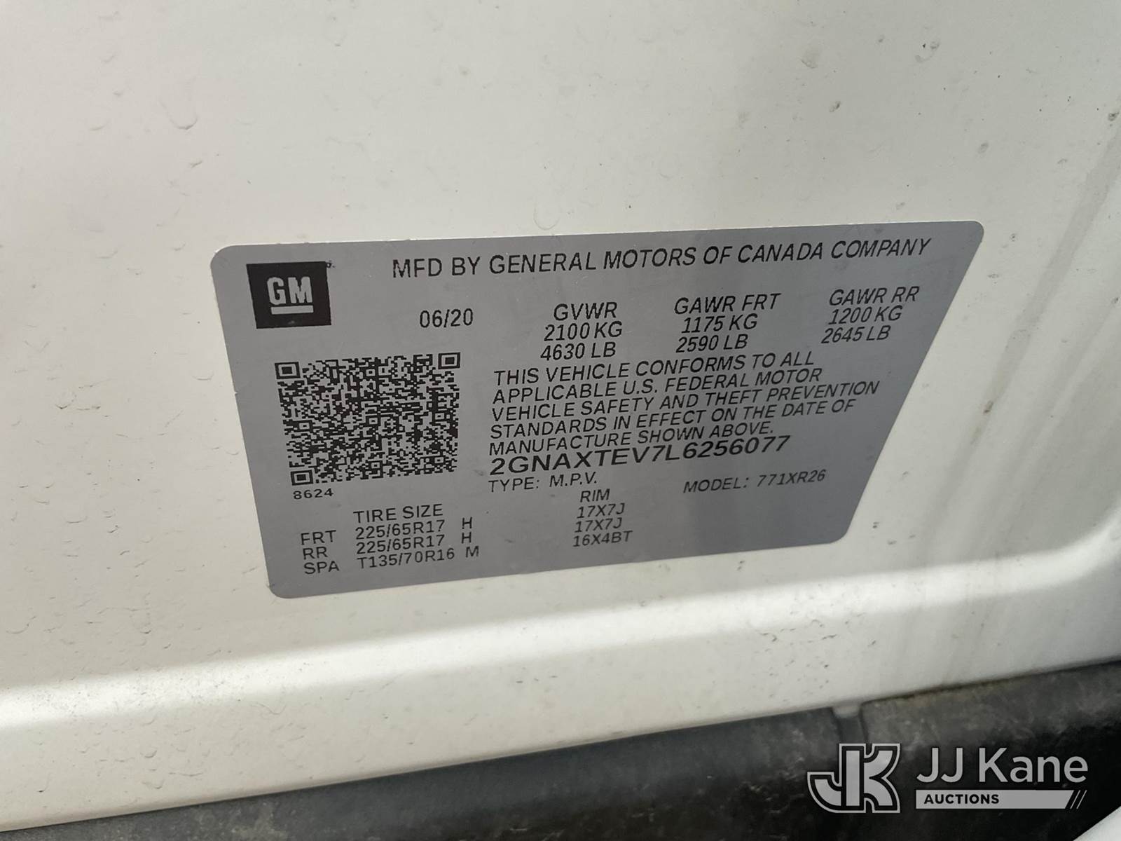 2020 Chevrolet Equinox LT AWD 4-Door Sport Utility Vehicle, 1.5L L4 DOHC 16V TURBO gas, 6-Speed Automatic, A/C, (64,315 miles) (Duke Unit) (Runs & Moves) (Body Damage, Remote Batteries Bad) This is a Titled Item NOTE: This unit is being sold AS IS/WHERE IS via Timed Auction and is located in Verona, KY. Inspection & preview days for this unit are the 2 business days prior to the first day of items closing for this auction, item is located at 2841 Verona-Mudlick Rd Ste B Verona, KY 41092 and hours of operations are 8a-4p. For pre-sale questions, please contact Office Staff @ (502) 612-5080. Auctioneer Michael Whitebread / License # 256617. (Buyer is responsible for removal. Assistance by consignor or JJ Kane Auctions is not assured.)