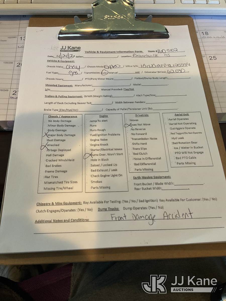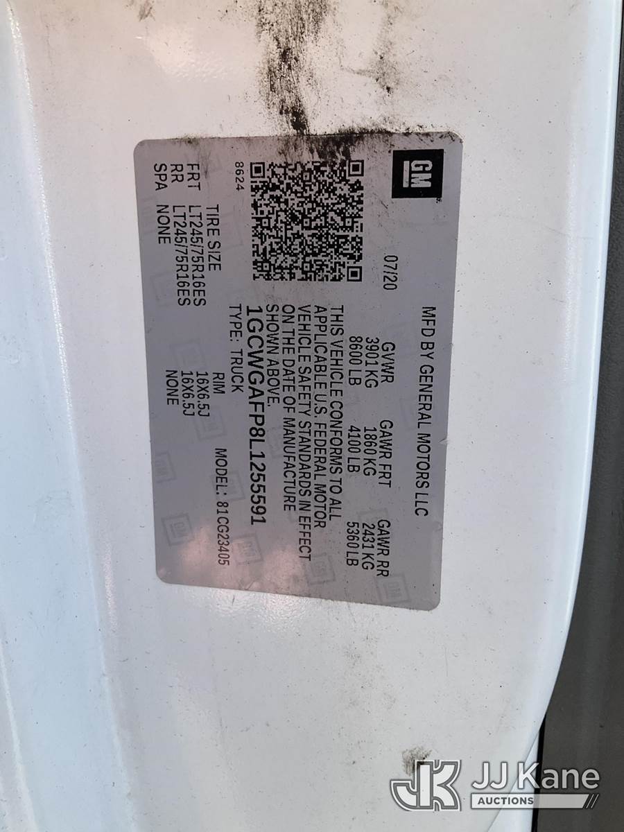 2020 Chevrolet Express 2500 Cargo Van, 6-cyl Gas 6-Speed Automatic, A/C, (62,030 miles) (Not Running, Condition Unknown) (Cranks, Accident Damage, Missing Parts) (Removal is by Appointment Only, Buyer MUST make a appointment prior to picking up, Buyer/Transporter Must have PAID IN FULL RELEASE. No onsite assistance available, Please Come prepared.) This is a Titled Item NOTE: This unit is being sold AS IS/WHERE IS via Timed Auction and is located in Branchville, NJ. Inspection & preview days for this unit are by appointment only; please contact us at contact@jjkane.com or 84-Go-JJKane for more details. For pre-sale questions, please contact the on-site office @ (973) 948-2026 or wtrbranchville@gmail.com. (Buyer is responsible for removal. Assistance by consignor or JJ Kane Auctions is not assured.)