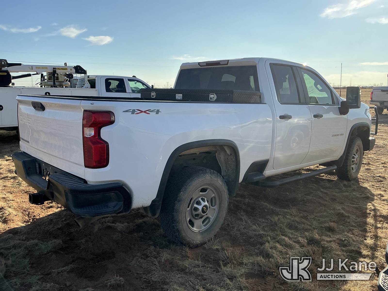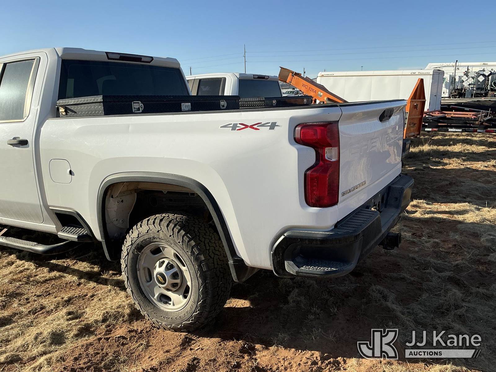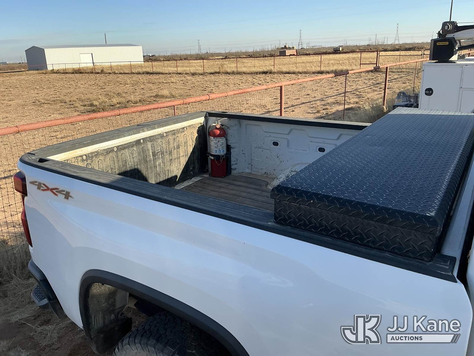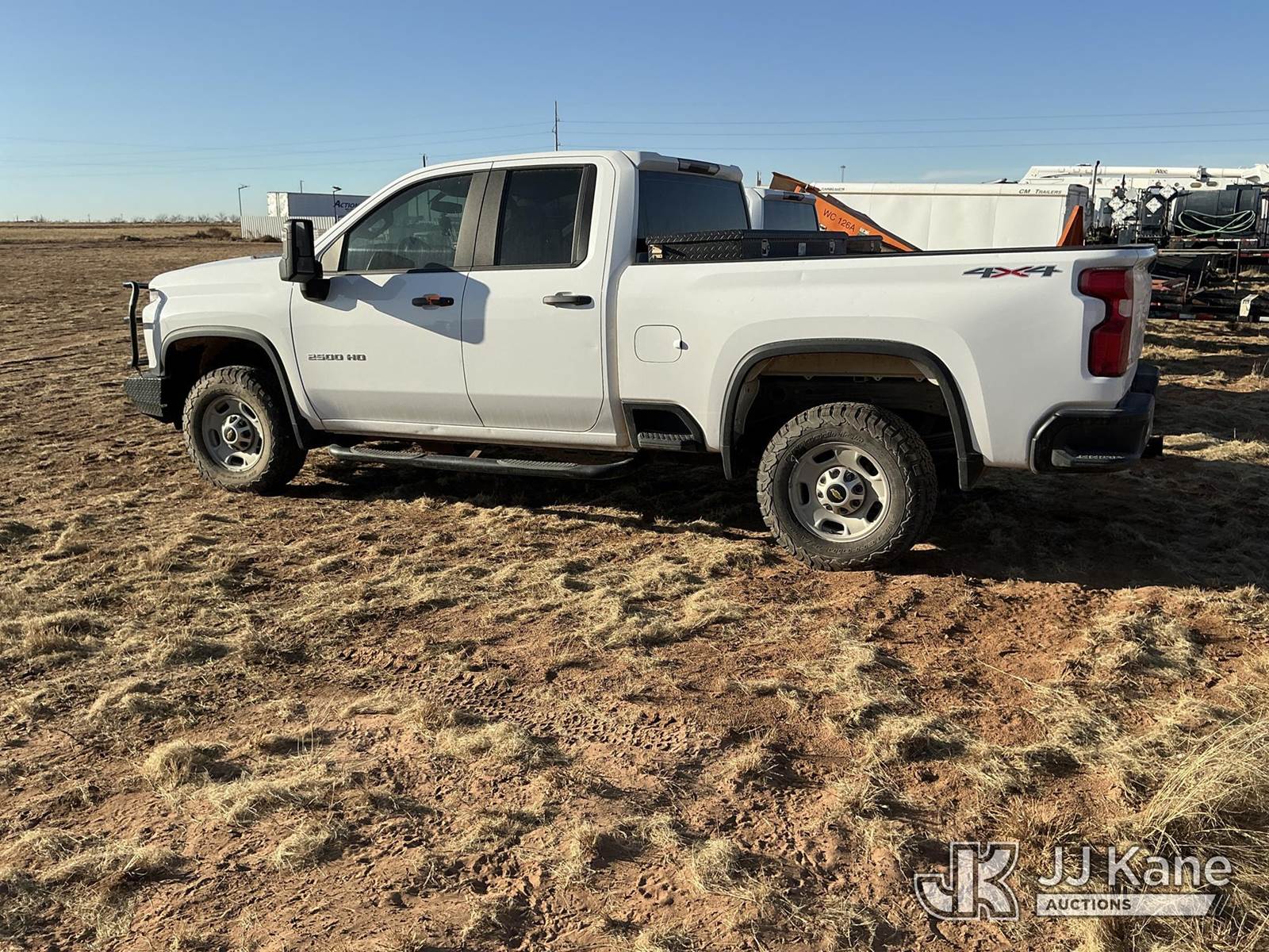 2020 Chevrolet Silverado 2500HD 4x4 Extended-Cab Pickup Truck, 8-cyl gas, Auto, A/C, with Front Bumper Brush Guard, Bed Mounted Toolbox, True Mileage Unknown (Not Running, Condition Unknown) (No Battery, Front Windshield Cracked, Driveshaft Is Disconnected Bolts Inside Toolbox) This is a Titled Item NOTE: This unit is being sold AS IS/WHERE IS via Timed Auction and is located in Stanton, TX. For more information & removal arrangements please contact Jim Wilmes @ 432-701-7280. Inspection & preview days for this unit are the 2 business days prior to the first day of items closing for this auction, This item is located at 2732 County Rd C2000 Stanton TX (Buyer is responsible for removal. Assistance by consignor or JJ Kane Auctions is not assured.)