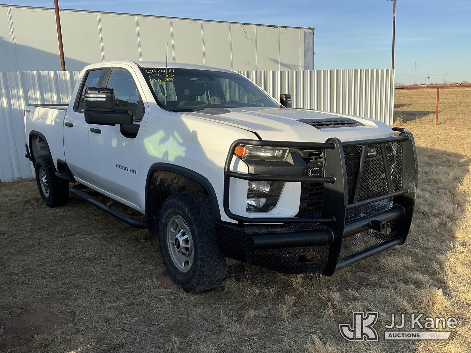 2020 Chevrolet Silverado 2500HD Crew-Cab Pickup Truck, 8-cyl gas, Auto, 4wd, A/C, with brush guard, True Mileage Unknown (Not Running, Condition Unknown, Missing Battery & The Coolant Reservoir Is Disconnected, Driver Side Front Tire Is Flat, Windshield Cracked, Hood Has Damage Dents, Body Has Scratches, Passenger Mirror Assembly Damaged) This is a Titled Item NOTE: This unit is being sold AS IS/WHERE IS via Timed Auction and is located in Stanton, TX. (Buyer is responsible for removal. Assistance by consignor or JJ Kane Auctions is not assured.)