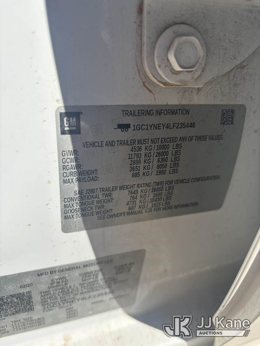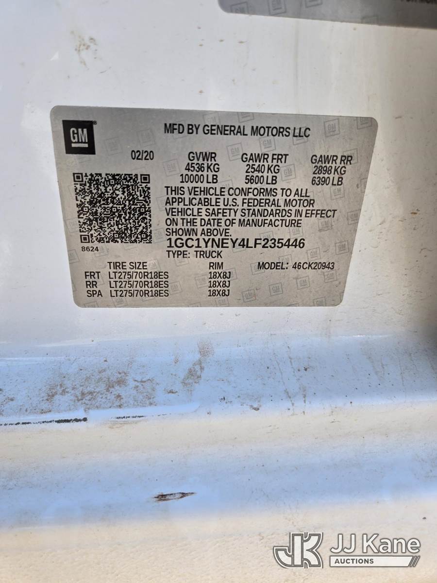 2020 Chevrolet Silverado 2500HD Crew-Cab Service Truck, 6.6L Diesel 4wd, 6-Speed Automatic, A/C, (190,193 miles) Utility Body (Not Running, Condition Unknown) (Per Seller: Needs Injection Pump & All Injectors, Needs Tank & Lines Flushed, Engine Light On) (Reads 4,627 hours) This is a Titled Item NOTE: This unit is being sold AS IS/WHERE IS via Timed Auction and is located in Casper, WY. Inspection & preview days for this unit are by appointment only; please contact us at contact@jjkane.com or 84-Go-JJKane for more details. (Buyer is responsible for removal. Assistance by consignor or JJ Kane Auctions is not assured.)