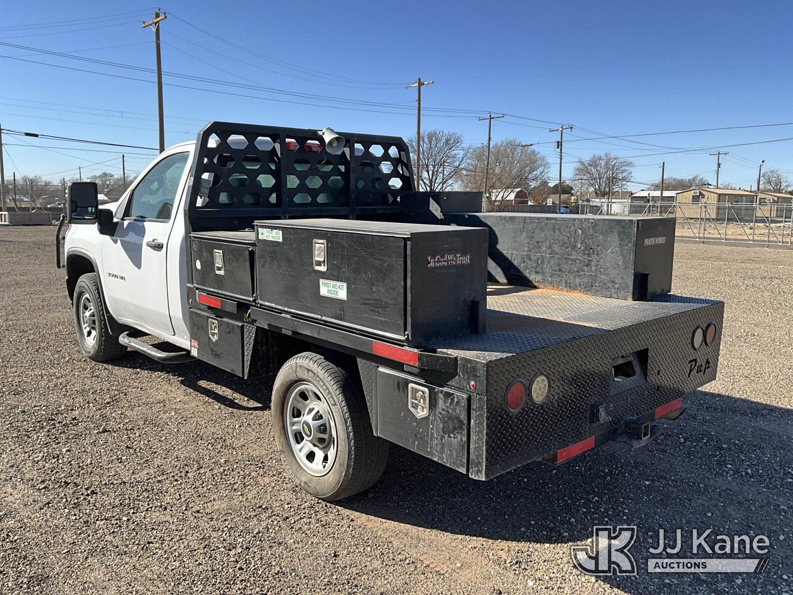 2020 Chevrolet Silverado 3500HD 4x4 Flatbed/Service Truck, 6.6L V8 OHV 16 gas, 6-Speed Automatic, A/C, with 8ft Flatbed, (93,883 miles) (Runs & Moves) (Jump To Start, Check Engine Light On) This is a Titled Item NOTE: This unit is being sold AS IS/WHERE IS via Timed Auction and is located in Tahoka, TX. For more information & removal arrangements please contact Ben Cox @ ben.cox@jjkane.com (Buyer is responsible for removal. Assistance by consignor or JJ Kane Auctions is not assured.)