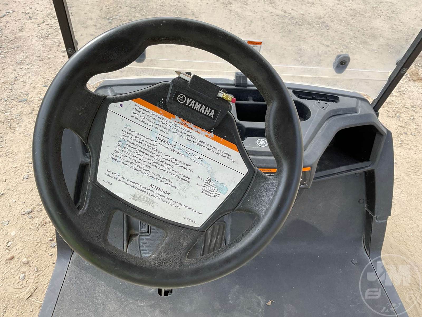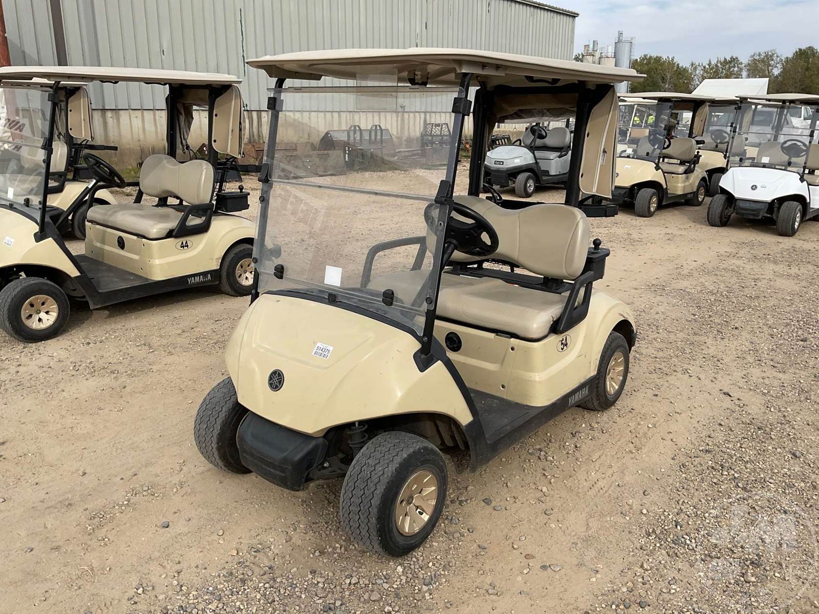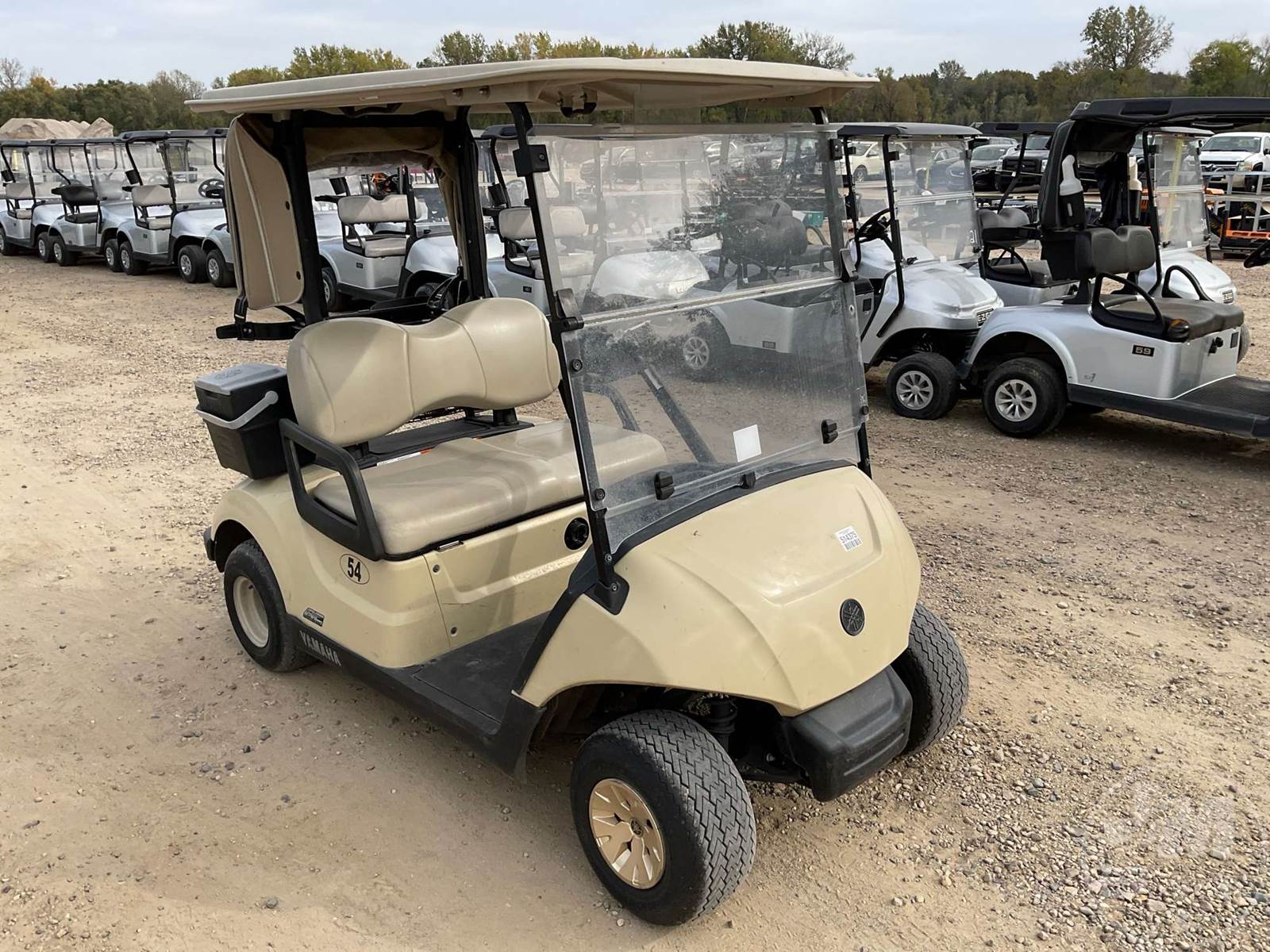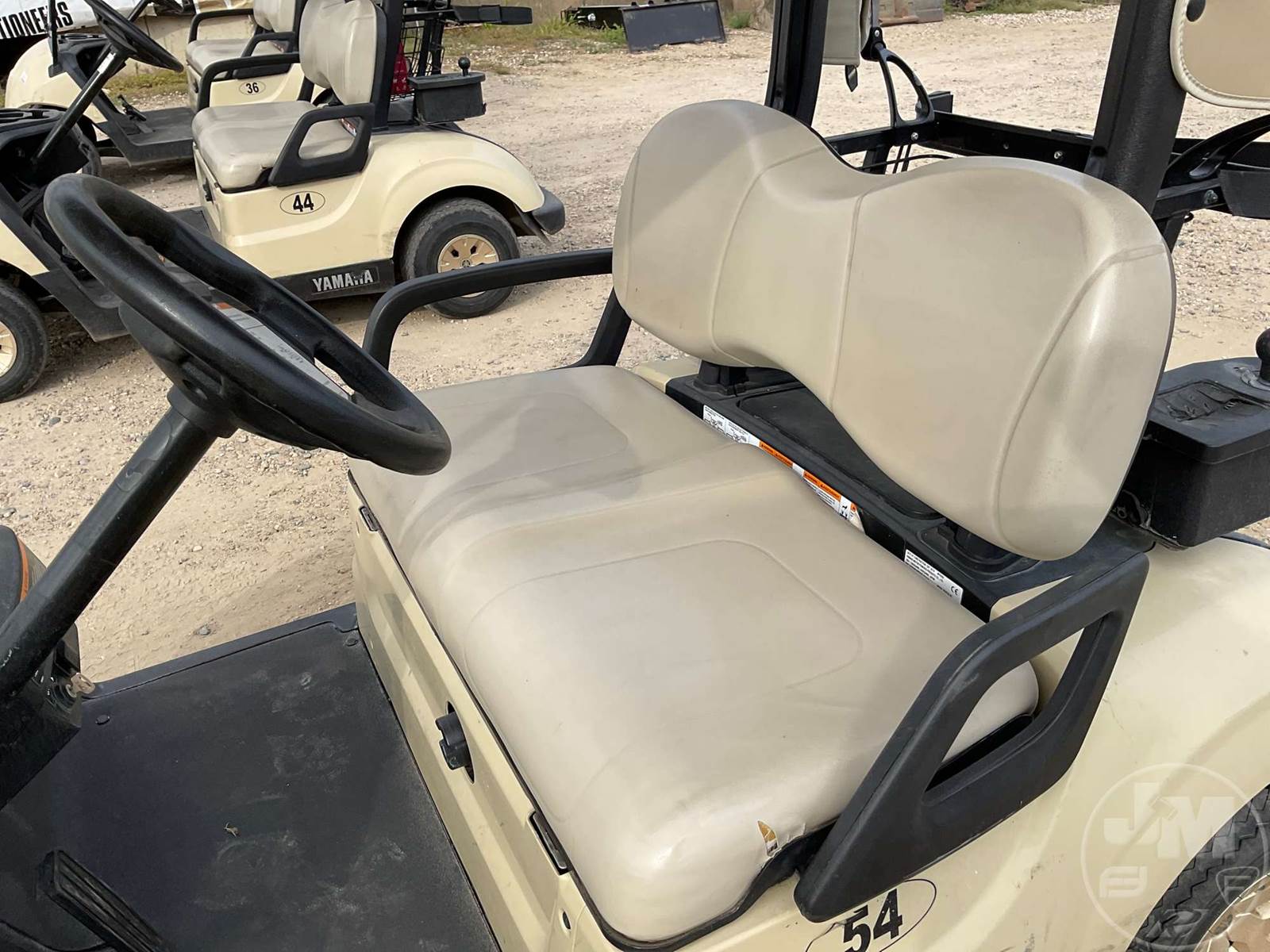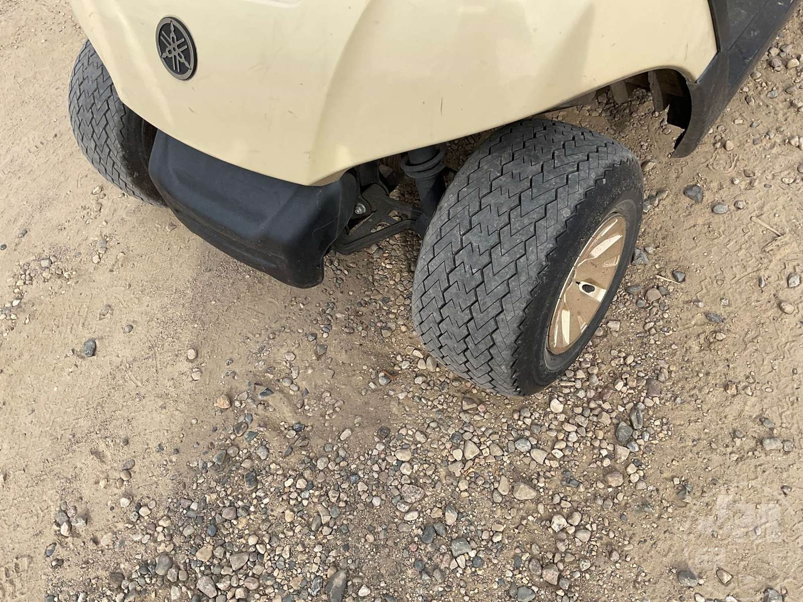 YAMAHA GOLF CART, ELECTRIC, TAN, 2 SEAT, CANOPY, RAIN CURTAIN, WINDSHIELD, COOLER, BALL WASHER, PLUG IN CHARGER ****NO TITLE, BILL OF SALE ONLY****