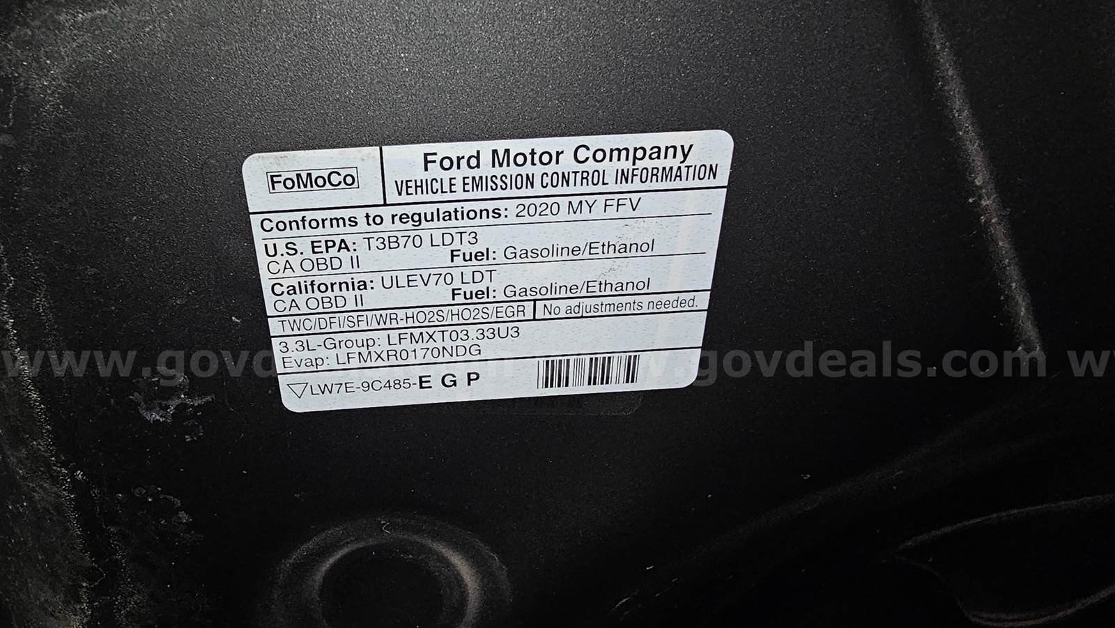 This 2020 Ford interceptor utility, with a 3.3L, V6 gas engine that runs/drivable. This vehicle starts with a boost and runs/drivable. This vehicle was maintained every 5,000 miles. It was removed from service in November 2025 and maintenance records are available for inspection. It has a black exterior with minor scratches, dents and dings. No cracked glass in the windows. The tire condition is excellent with 9/32 tread, no flats, and 4 hubcaps. Decals have been removed and impressions remain. The interior is black cloth. There is no damage to the seats, but there is a hole in the flooring on the driver's side. The radio is a stock AM/FM. The AC condition is cold. It has cruise control, tilt steering, remote mirrors and climate control. It also includes power steering, power windows, power door locks and power seats. It has dual air bags. The emergency equipment includes a 54" Soundoff Signal lightbar with emergency controller, Havis console with built in printer mount, a Havis tablet mount, an Ikey keyboard and mount installed, Havis dual gun lock with extra pistol lock, a ProGard back seat assembly with front partition. Everything currently works with no known issues on installed equipment. Check engine light is on, and the scan is for cylinder 1 misfire.