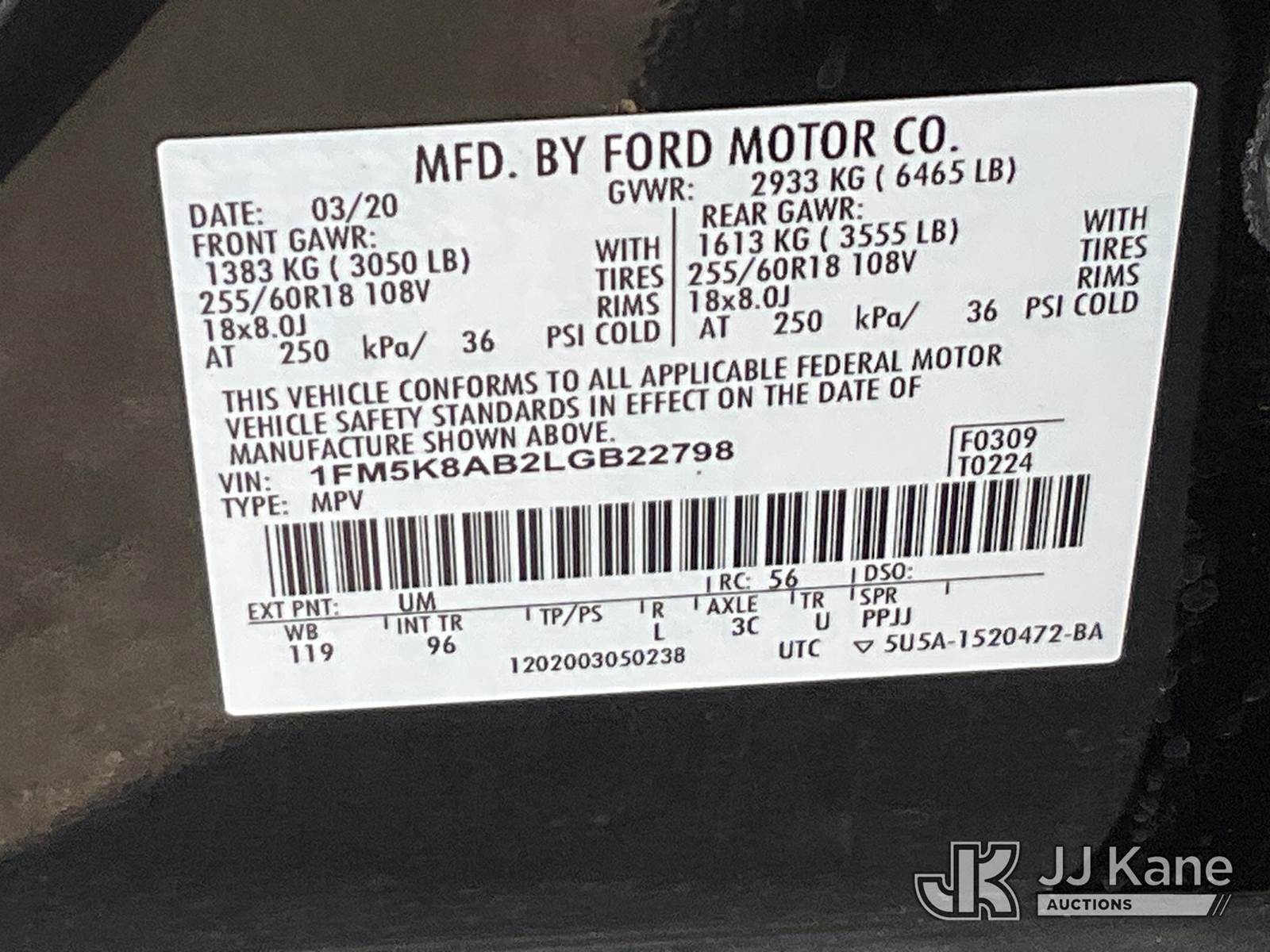 2020 Ford Explorer AWD Police Interceptor 4-Door Sport Utility Vehicle, 6-cyl gas, Auto, A/C, (72,106 miles) (Runs & Moves) This is a Titled Item NOTE: This unit is being sold AS IS/WHERE IS via Timed Auction and is located in Salt Lake City, UT. Inspection & preview days for this unit are the 2 business days prior to the first day of items closing for this auction, item is located at 2353 N Redwood Rd Salt Lake City, UT 84116 and hours of operations are 8a-4p. Titles executed exactly as bidder registered. Ensure your name and/or business name and address in JJ Kane and/or ProxiBid is correct before bidding. For pre-sale questions, please contact Office Staff @ (801) 519-0123. (Buyer is responsible for removal. Assistance by consignor or JJ Kane Auctions is not assured.)