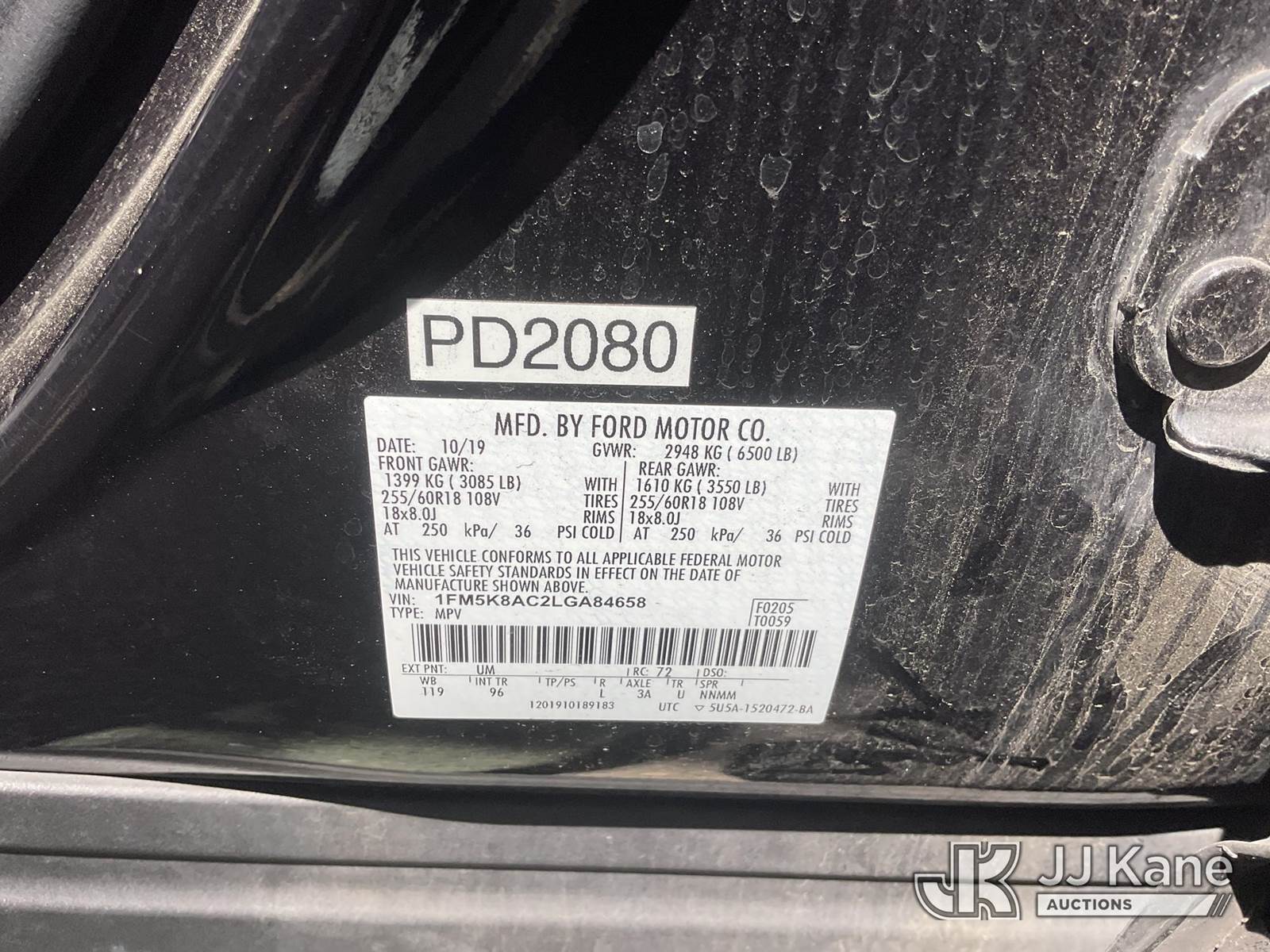 2020 Ford Explorer Police 4WD 4-Door Sport Utility Vehicle, s/n 1FM5K8AC2LGA84658, 3.0L V6 DOHC 24V GAS, 10-Speed Automatic, A/C, with Tow Package, (75,678 miles) (Runs & Moves, No Horn) (Bidding Restricted to Licensed Vehicle Dealers Only), This is a Titled Item NOTE: This unit is being sold AS IS/WHERE IS via Timed Auction and is located in Dixon, CA. Inspection & preview days for this unit are the 2 business days prior to the first day of items closing for this auction, item is located at 8668 Sparling Ln Dixon, CA 95620 and hours of operations are 8a-4p. For pre-sale questions, please contact JJ Kane Staff at (707) 678-8060 (dixon@jjkane.com). Dealer License Number 45696. (Buyer is responsible for removal. Assistance by consignor or JJ Kane Auctions is not assured.)