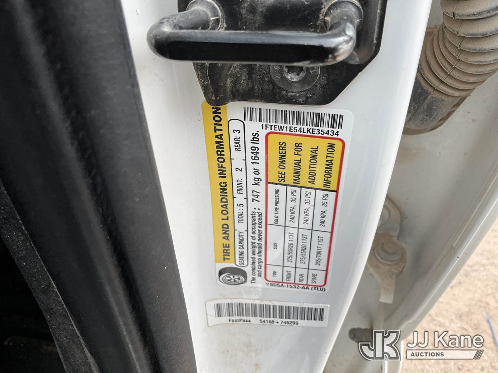 2020 Ford F-150 Crew-Cab Pickup Truck, 8-cyl gas, 4wd, 6-Speed Automatic, A/C, (213,069 miles) (Runs & Moves) (Paint & Hail Damage, Tailgate Inop) (Reads 9,564 hours) This is a Titled Item NOTE: This unit is being sold AS IS/WHERE IS via Timed Auction and is located in Hobbs, NM. For pre sale questions, please contact the JJ Kane Account Manager, EJ Brown, at (915) 341 2565. For load out and pick up information, please refer to the release form provided after purchase. (Buyer is responsible for removal. Assistance by consignor or JJ Kane Auctions is not assured.)