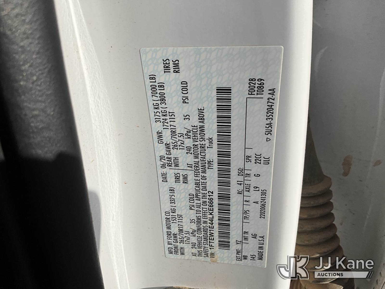 2020 Ford F-150 Crew-Cab Pickup Truck, 6-cyl gas, 4wd, 6-Speed Automatic, A/C, with Weather Guard Tool Box. Headache Rack., (87,572 miles) (Runs & Moves) This is a Titled Item NOTE: This unit is being sold AS IS/WHERE IS via Timed Auction and is located in Oklahoma City, OK. Inspection & preview days for this unit are by appointment only; please contact us at contact@jjkane.com or 84-Go-JJKane for more details. For pre-sale questions, please contact Ricky McPherson @ (816) 610-2250. (Buyer is responsible for removal. Assistance by consignor or JJ Kane Auctions is not assured.)