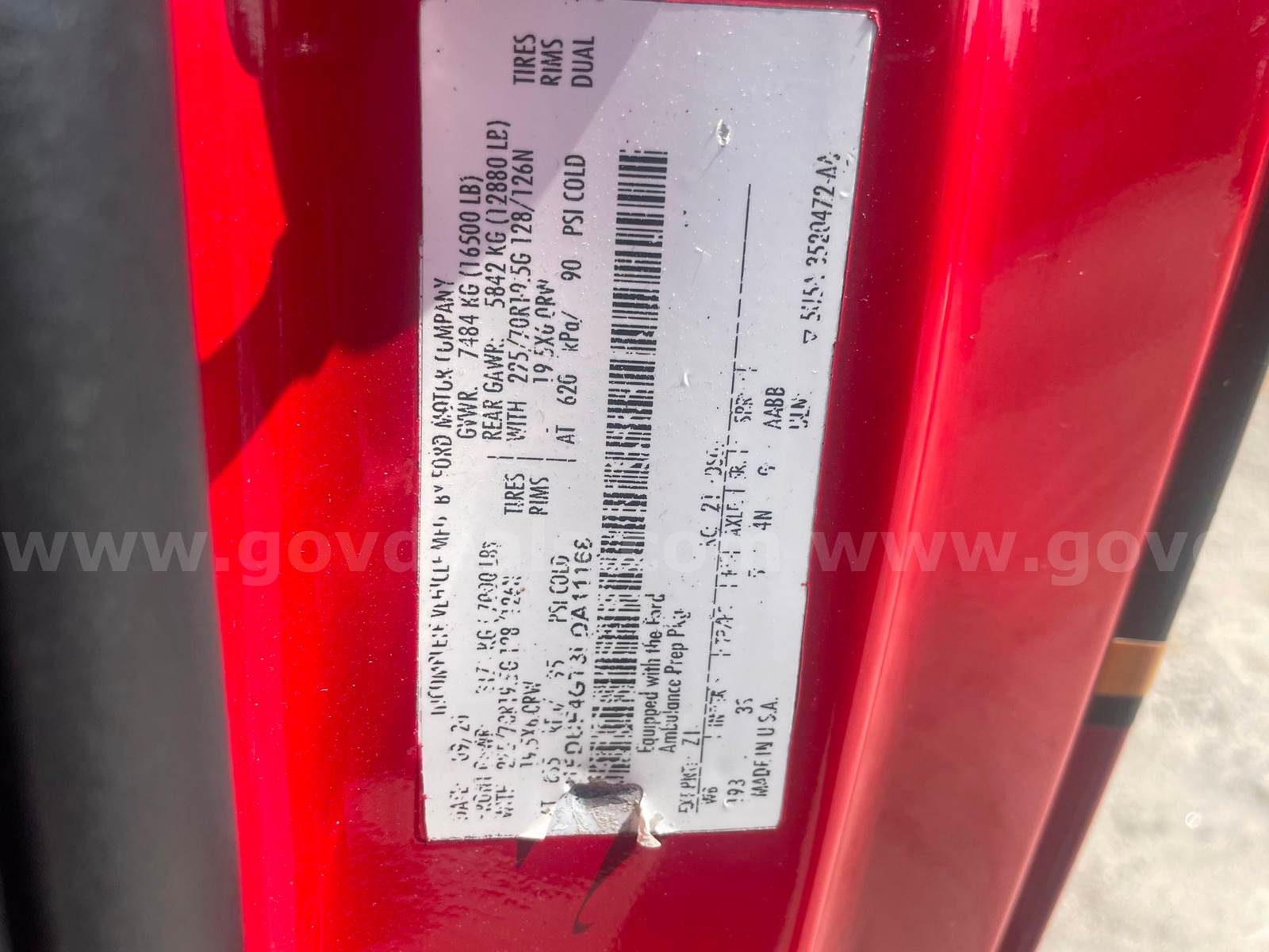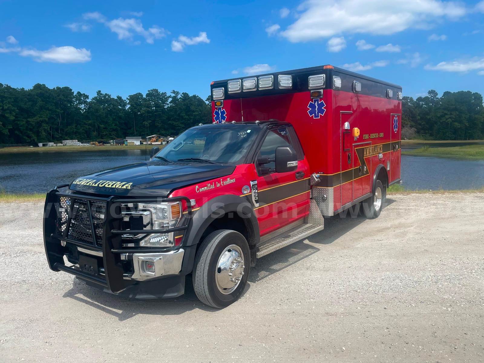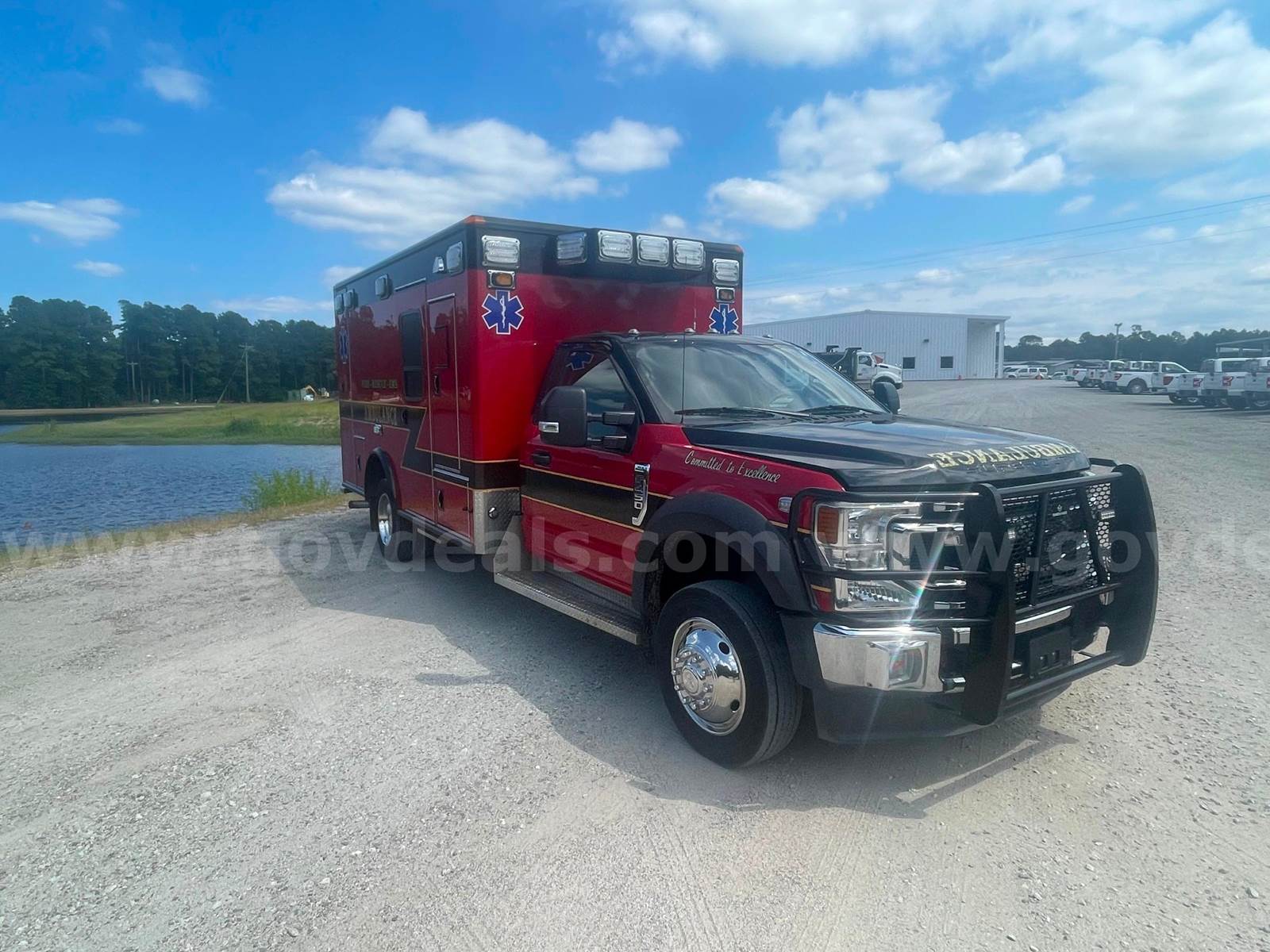 2020 Ford F 450 Super Duty Ambulance, 6.7 V8 DIESEL. Vehicle was used by Horry County EMS. Vehicle was maintained every 200 Hours. Vehicle runs; engines condition is unknown. Exterior is red with minor Dents, scratches, and dings. Tire condition is good, tread 15/32. Additional information, 2008 Box, Universal Radio, Whalen M series Lights, prewired for Motorola Radios,125/30amp 125VAC A/C, and Ranch Hand Brush Guard. Vehicle is used and is sold AS/IS. Once the vehicle is removed from the seller’s location, all sales are final. The ONLY Acceptable form of payment is Cashier's Check / Certified Check made payable to: Horry County, SC Item included in this listing is used and untested and may contain unknown defects that are not immediately detectable. This item has been used for an unknown period of time and may need significant repair(s) and/or part(s) replaced to be made functional. Items may be listed as functional at last use; this does not guarantee the item is functional at the time of pick-up. Horry County offers no opinion or guarantee on how well item will operate. Items are sold as-is/where-is. Questions about the item in this auction must be submitted in the GovDeals software and will be responded to via GovDeals software.