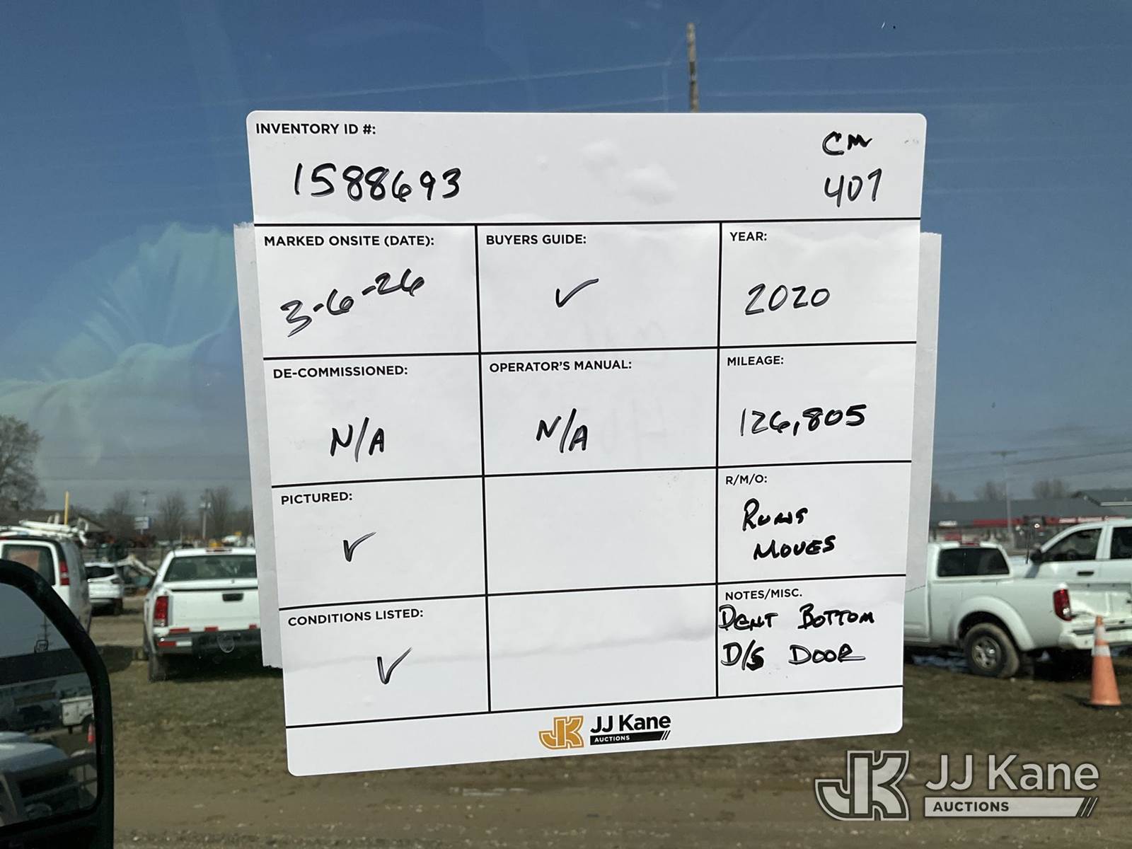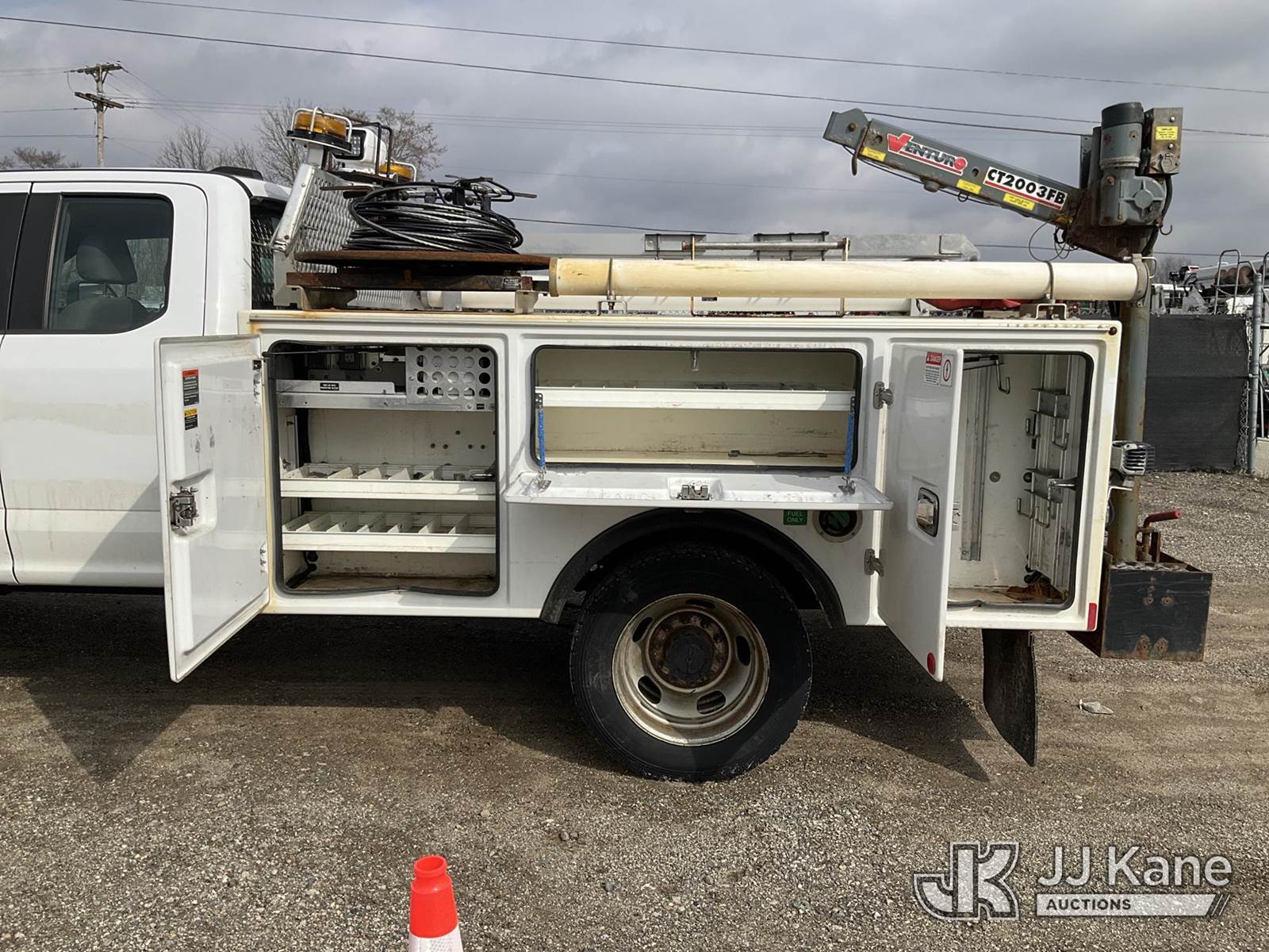 2020 Ford F-450 SD SuperCab DRW 4WD Extended-Cab Service Truck, 6.7L V8 OHV 16V DIESEL, Auto, A/C, with Bumper winch - operates , capstand winch - inop, material handling crane - condition unknown no remote ,brush guard, toolbox, converter , (126,805 miles) (Runs & Moves)( Dent Bottom Driver Side Door-see photo) (Reads 6,951 hours) This is a Titled Item NOTE: This unit is being sold AS IS/WHERE IS via Timed Auction and is located in Charlotte, MI. Inspection & preview days for this unit are the 2 business days prior to the first day of items closing for this auction, item is located at 750 Island Hwy Charlotte, MI 48813 and hours of operations are 8a-4p. For pre-sale questions, please contact Corey Cook at (517) 983-0796 or corey.cook@jjkane.com (Buyer is responsible for removal. Assistance by consignor or JJ Kane Auctions is not assured.)