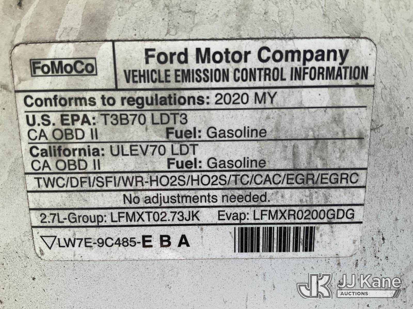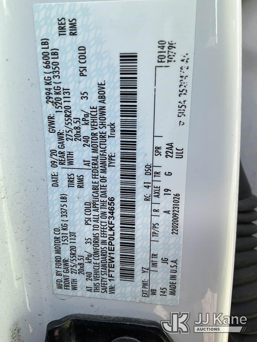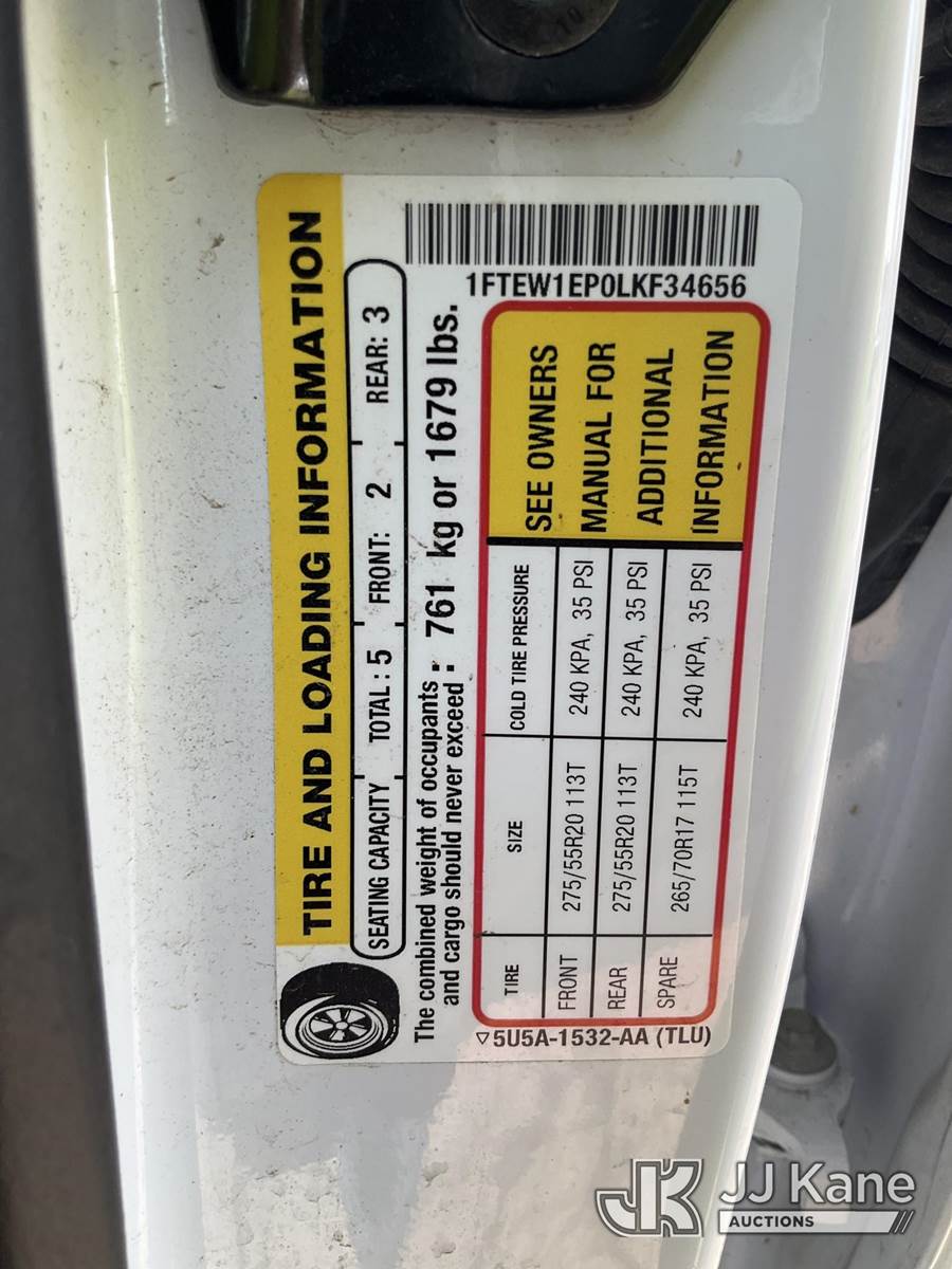 2020 Ford F150 4x4 Crew-Cab Pickup Truck, 2.7L V6 DOHC 24V gas, 6-Speed Automatic, A/C, (159,185 miles) (Runs & Moves) (Check Engine Light On) (Reads 7,343 hours) This is a Titled Item NOTE: This unit is being sold AS IS/WHERE IS via Timed Auction and is located in South Beloit, IL. Inspection & preview days for this unit are the 2 business days prior to the first day of items closing for this auction, item is located at 14354 Dearborn Ave South Beloit, IL and hours of operations are 8a-4p. For pre-sale questions, please contact Derek Eklund at (608) 904-0618 or (derek.eklund@jjkane.com). (Buyer is responsible for removal. Assistance by consignor or JJ Kane Auctions is not assured.)