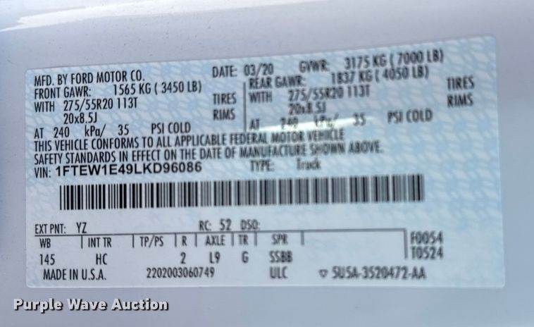 VIN: 1FTEW1E49LKD96086