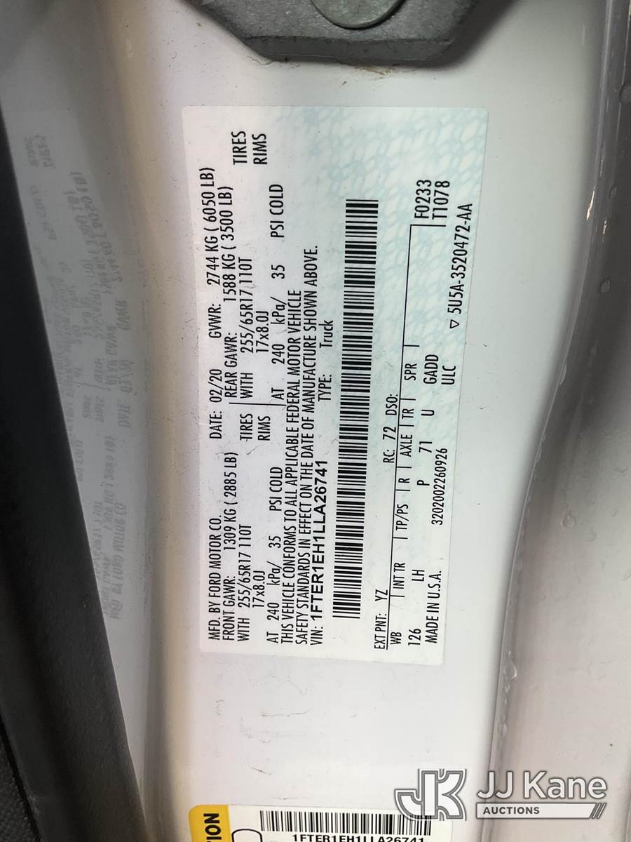 2020 Ford Ranger Extended-Cab Pickup Truck, 4-cyl gas, 10-Speed Automatic, A/C, (43,069 miles) (Runs & Moves) This is a Titled Item NOTE: This unit is being sold AS IS/WHERE IS via Timed Auction and is located in Jurupa Valley, CA. Inspection & preview days for this unit are the 2 business days prior to the first day of items closing for this auction, item is located at 4510 Muth Way Jurupa Valley, CA 92509 and hours of operations are 8a-4p. For pre-sale questions, please contact please contact Office Staff @ (310) 353-7140. Dealer License Number 45696. (Buyer is responsible for removal. Assistance by consignor or JJ Kane Auctions is not assured.)