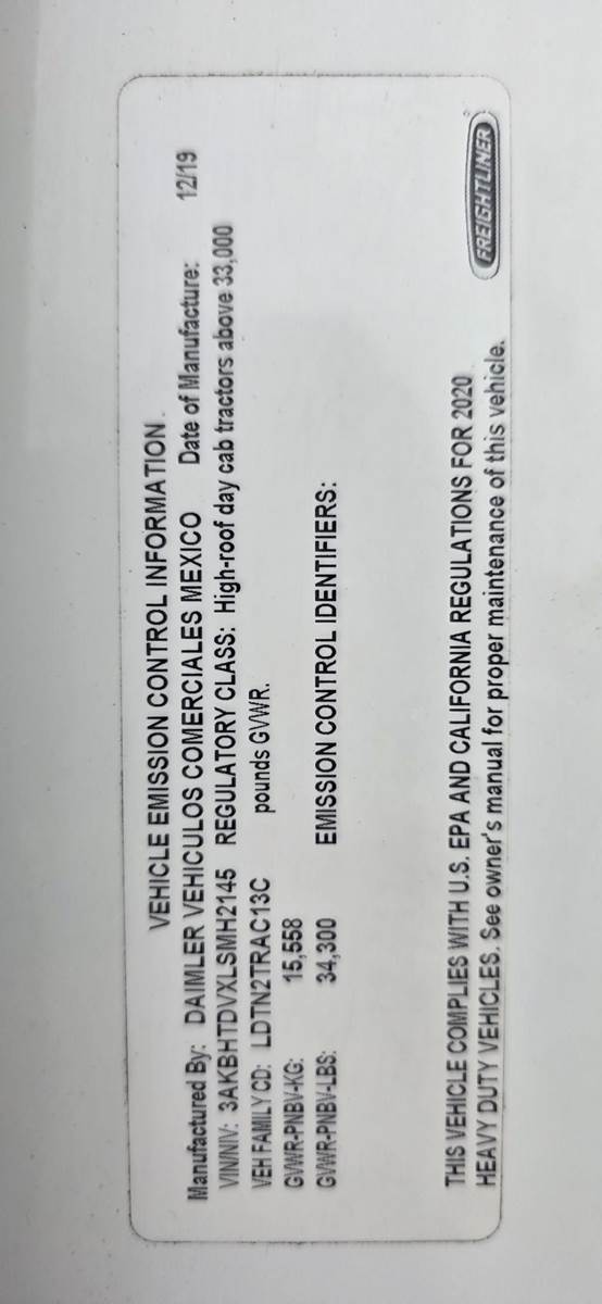 2020 Freightliner Cascadia 116 Single Axle Day Cab Truck - 410HP, 12 Speed Automatic
