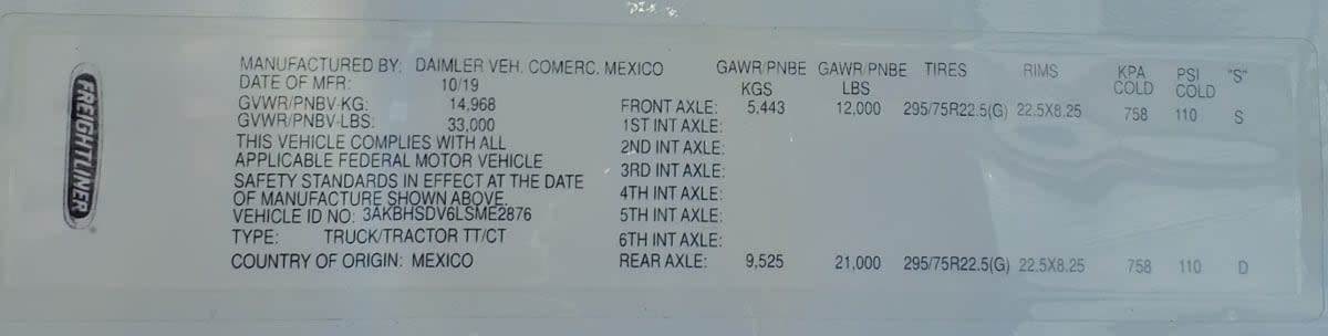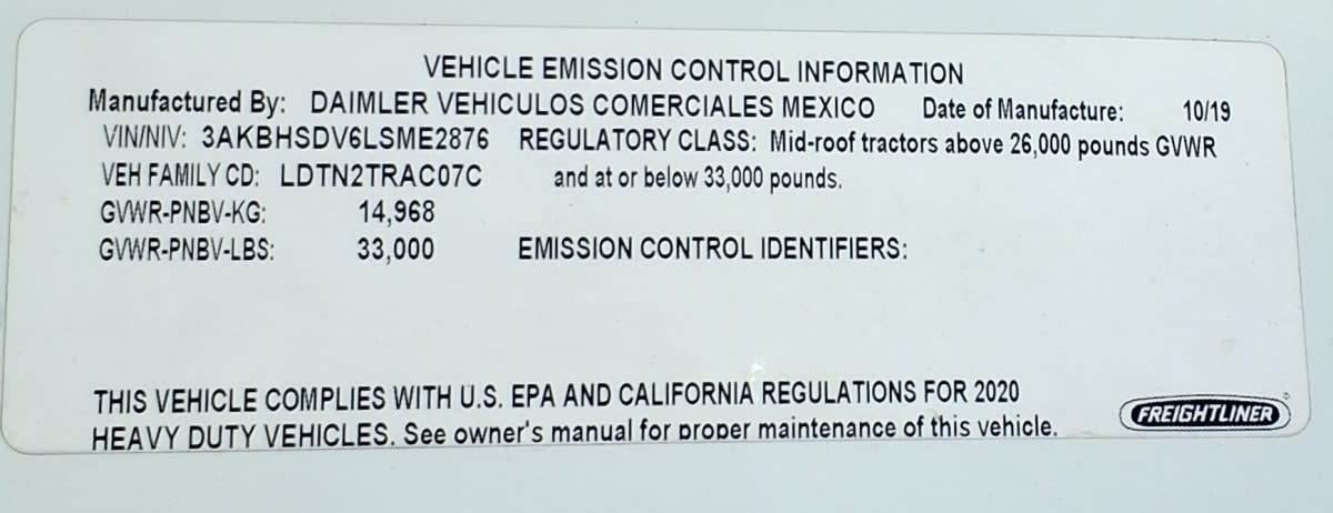 2020 Freightliner Cascadia 116 Single Axle Day Cab Truck - 450HP, 12 Speed Automatic