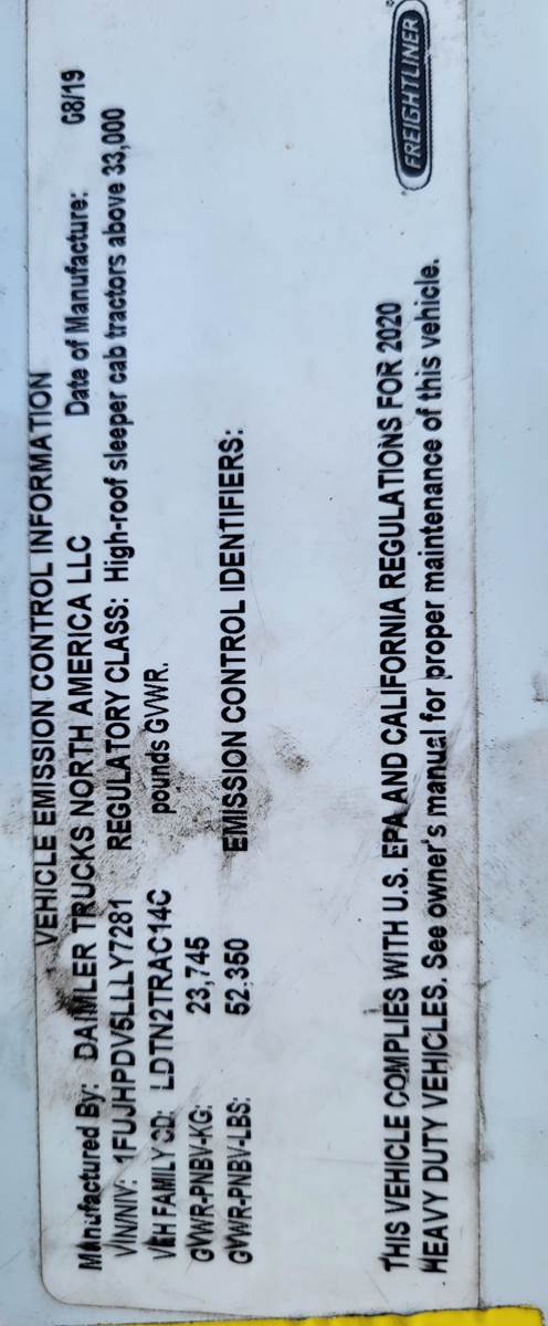 2020 Freightliner Cascadia 126 Sleeper Semi Truck - 48" Mid Roof Sleeper, 450HP, 12 Speed Automatic