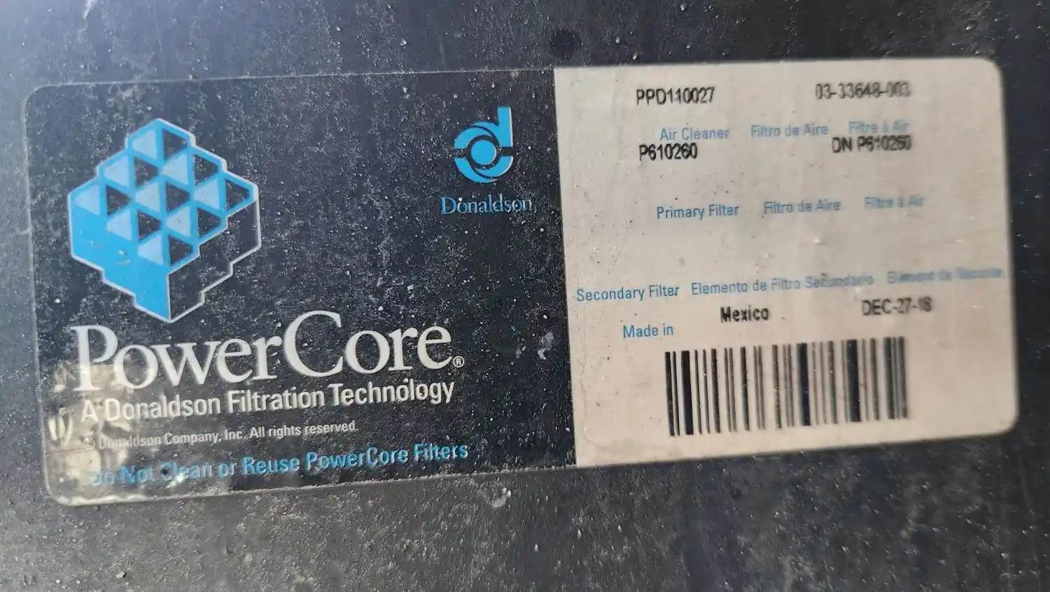 (Used) 2020 Freightliner Cascadia 125, AIR CLEANER- Part Number: PPD110027, Side: Center Of Truck, Color: Black, Material: Plastic, Engine: Detroit DD15, Dimensions: L=33", W=27", Reference images for condition, For more information about this item, give us a call. We ship Worldwide! (CRG HEAVY TRUCK PARTS) 929 W PULASKI HWY ELKTON, MD 21921, Dimensions: L=33", W=27", Material: Plastic, Shape: Rectangular