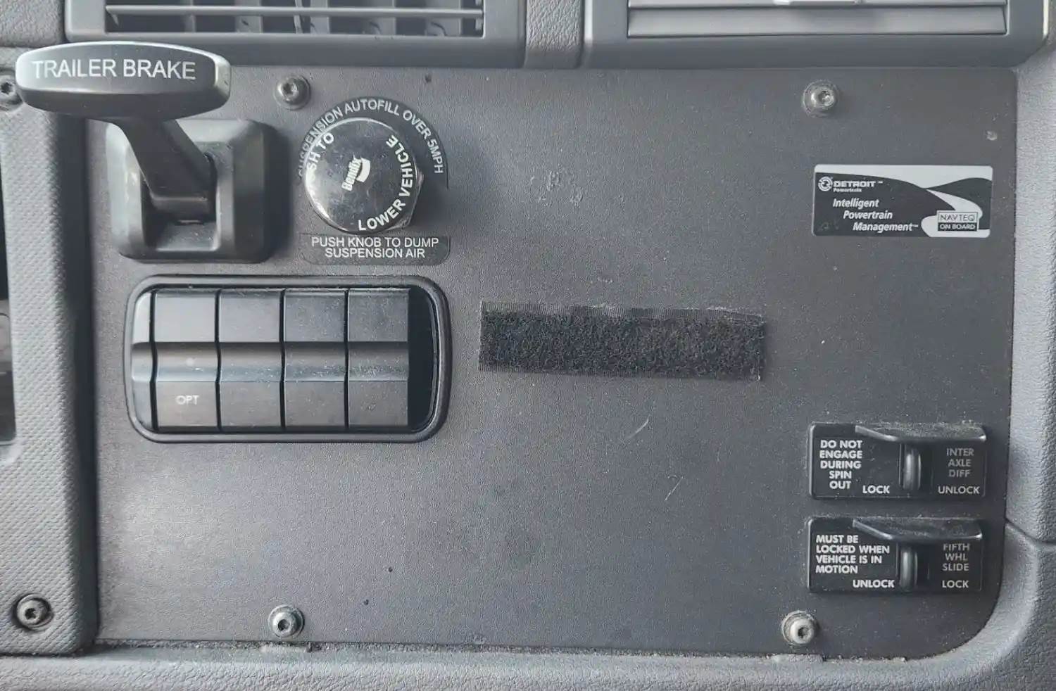 (Used) 2020 Freightliner Cascadia 125, MISCELLANEOUS DASH SWITCHES- Controls: Trailer Brake, Lower Vehicle, OPT, Inter Axle Diff, Fifth Wheel Slide, Material: Aluminum with Plastic, Reference images for condition, For more information about this item, give us a call. We ship Worldwide! (CRG HEAVY TRUCK PARTS) 929 W PULASKI HWY ELKTON, MD 21921, Material: Aluminum and Plastic