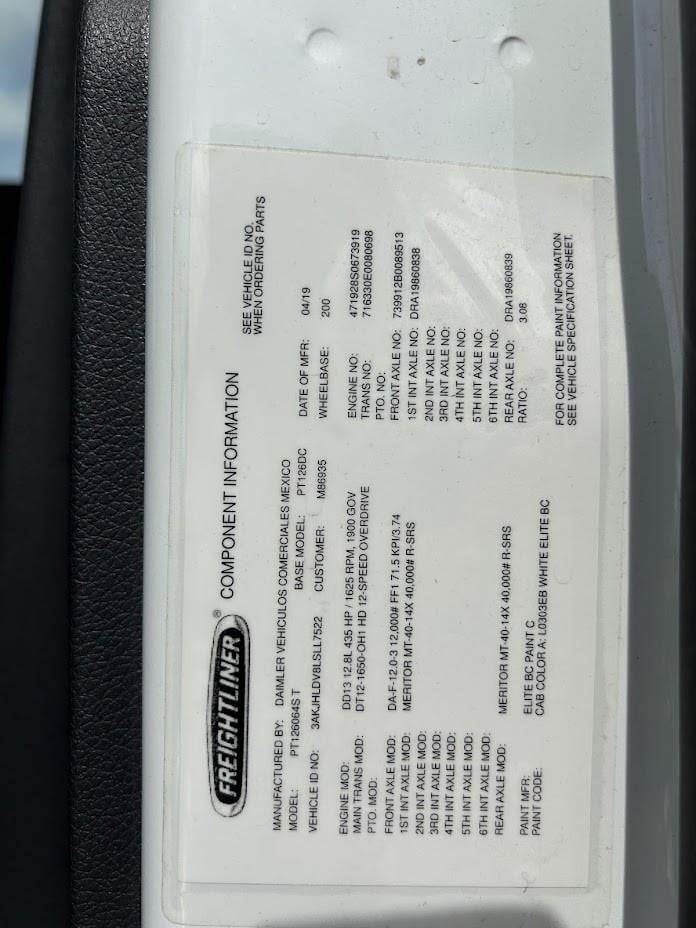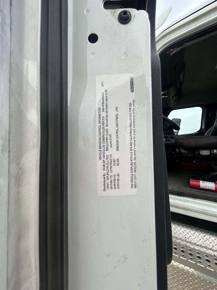 2020 Freightliner Cascadia 126 Day Cab, Detroit DD13 (12.8L) 435HP Engine, DT12 12 Spd Detroit DT12-OA Transmission, Air Ride Suspension, Tandem Axle, 52,000 GVW, 12,000# Meritor Front Axle, 40,000# Meritor MD2014X, 3.08 Ratio, 200" Wheelbase (CA/CT-132" EOF-184"), 11R22.5 Tires (Front: 13/32 - Rear: 14/32), Air Brakes 50%, Cruise, AC, Engine Brake, 5th-Wheel Air Slide, Power Locks, Power Windows, Power Steering, Tilting & Telescoping, Power Mirror, Air Ride/Fixed Seats, Aluminum 100/100 gal. Fuel Tanks