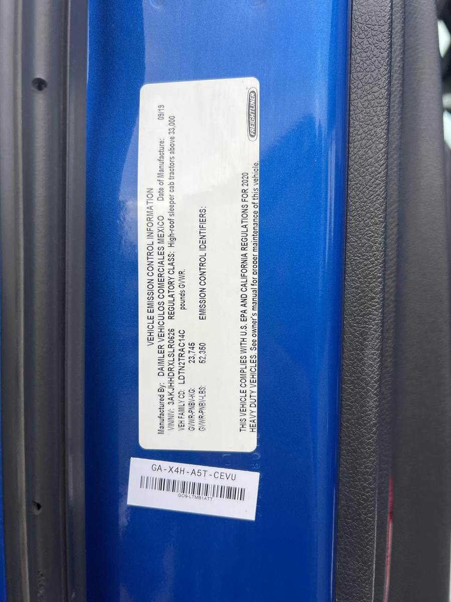 2020 Freightliner Cascadia 126 Sleeper Semi Truck - Raised Roof Sleeper, Detroit 400HP, 12 Speed Dt12 Automatic
