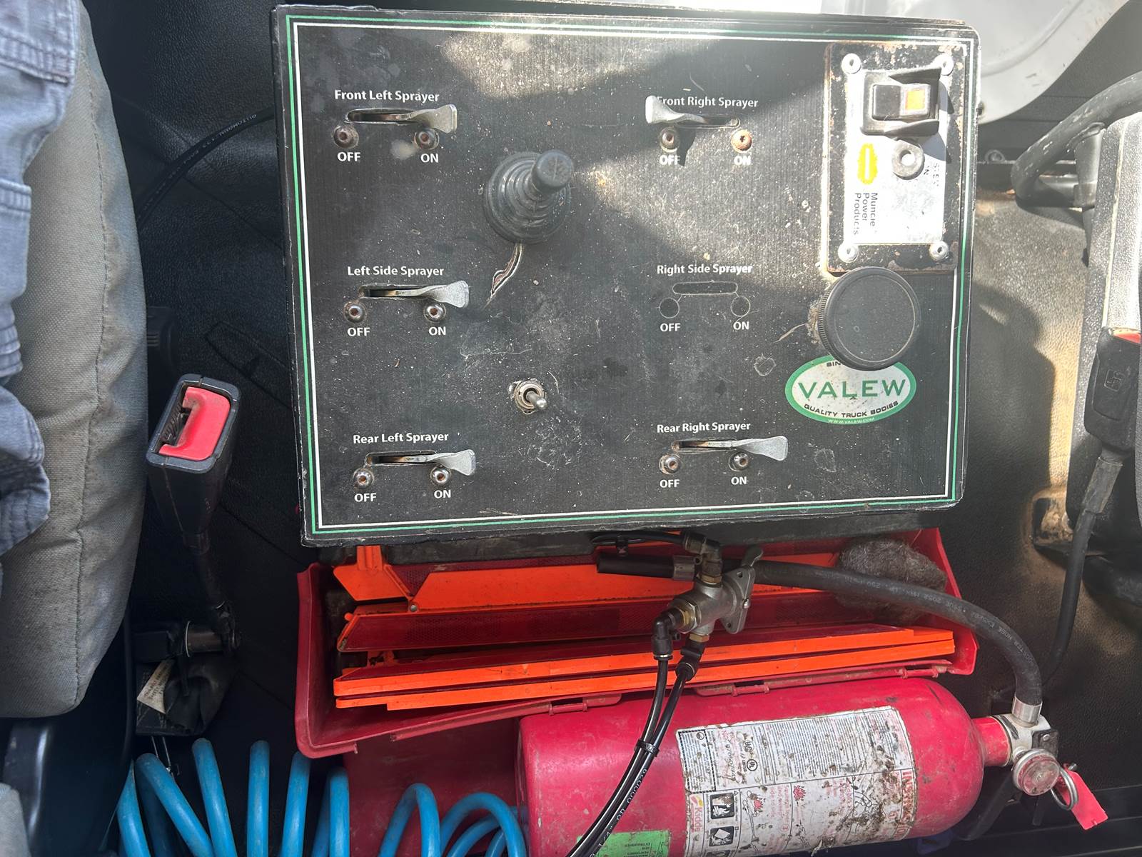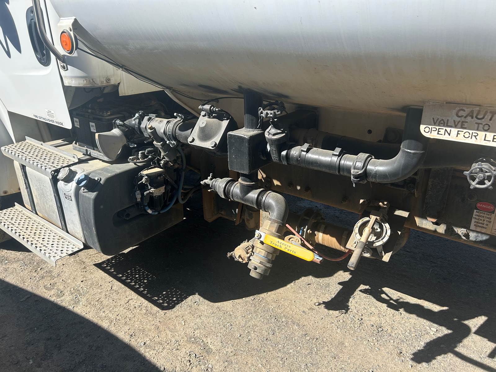 4000 gallon Valew tank. 2 front sprayers, 1 side sprayer and 3 rear sprayers. Side sprayer on electric swivel for smooth operation. Cab controlled water cannon. 50 foot hose reel in rear. 1 - 2 1/2” hand valve on each side. Drafting capable. 300 hp Cummins with 6 speed auto transmission. Hand brake for trailer brakes.