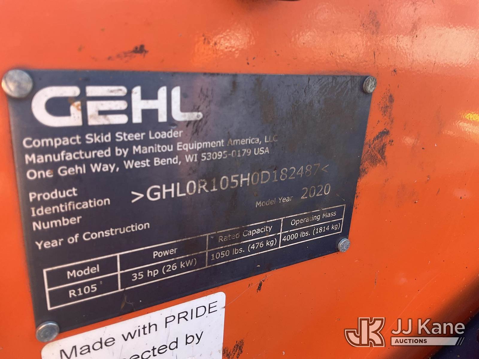 2020 Gehl R105 Rubber Tired Skid Steer Loader, s/n GHL0R105H0D182487, Yanmar diesel, Hydrostatic, with QD GP Loader Bucket, Aux Hyd Outlet & ROPS, (Runs & Moves) (Reads 1,164 hours) NOTE: This unit is being sold AS IS/WHERE IS via Timed Auction and is located in Plymouth Meeting, PA. Inspection & preview days for this unit are the 2 business days prior to the first day of items closing for this auction, item is located at 1402 Conshohocken Rd Plymouth Meeting, PA 19462 and hours of operations are 8a-4p. For pre-sale questions, please contact Bruce Thomas @ (267) 887-0392 or bruce.thomas.jr@jjkane.com. (Buyer is responsible for removal. Assistance by consignor or JJ Kane Auctions is not assured.)