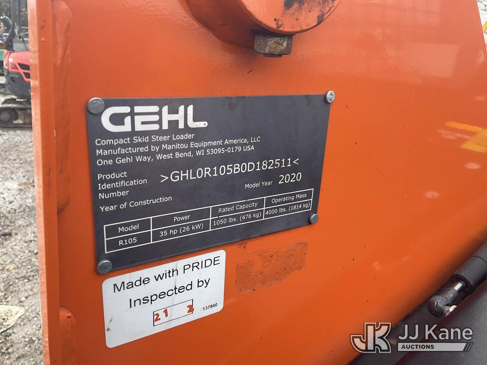 2020 Gehl R105 Rubber Tired Skid Steer Loader, s/n GHL0R105B0D182511, Yanmar diesel, Hydraulic Drive, with QD GP Loader Bucket, Aux. Hyd. Outlets, & ROPS, (Runs & Moves) (Reads 508 hours) NOTE: This unit is being sold AS IS/WHERE IS via Timed Auction and is located in Plymouth Meeting, PA. Inspection & preview days for this unit are the 2 business days prior to the first day of items closing for this auction, item is located at 1402 Conshohocken Rd Plymouth Meeting, PA 19462 and hours of operations are 8a-4p. For pre-sale questions, please contact Bruce Thomas @ (267) 887-0392 or bruce.thomas.jr@jjkane.com. (Buyer is responsible for removal. Assistance by consignor or JJ Kane Auctions is not assured.)