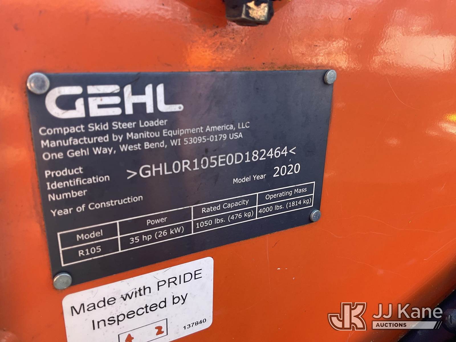 2020 Gehl R105 Rubber Tired Skid Steer Loader, s/n GHL0R105E0D182464, Yanmar diesel, Hydraulic Drive, with QD Loader Bucket, Aux. Hyd. Outlets & ROPS, (Runs & Moves) (Jump To Start) (Reads 1,176 hours) NOTE: This unit is being sold AS IS/WHERE IS via Timed Auction and is located in Plymouth Meeting, PA. Inspection & preview days for this unit are the 2 business days prior to the first day of items closing for this auction, item is located at 1402 Conshohocken Rd Plymouth Meeting, PA 19462 and hours of operations are 8a-4p. For pre-sale questions, please contact Bruce Thomas @ (267) 887-0392 or bruce.thomas.jr@jjkane.com. (Buyer is responsible for removal. Assistance by consignor or JJ Kane Auctions is not assured.)