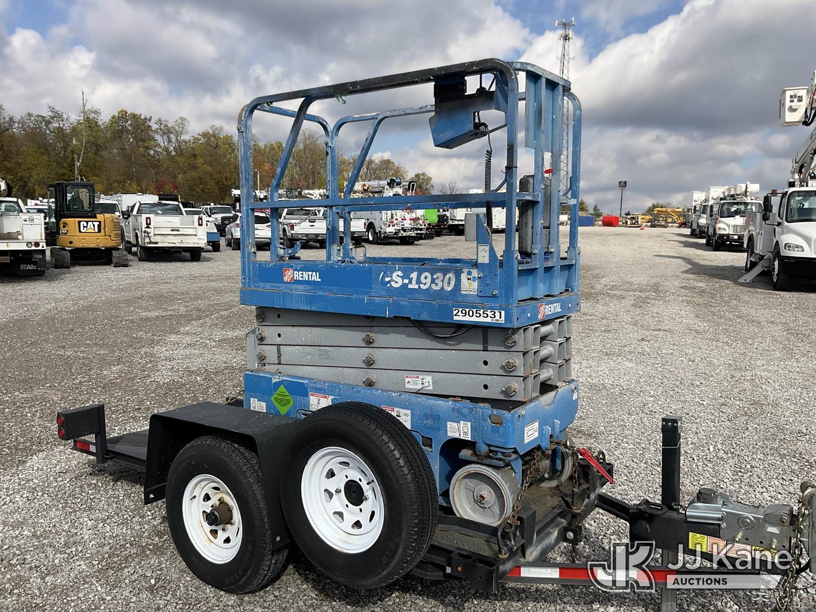 2020 Genie 1930 Self-Propelled Scissor Lift, s/n GS30P-194350, battery powered, with 2020 S/A Tagalong Support Trailer Vin: 5631F1413LM000055, To Be Sold With Lot# V416T (Equipment and trailer price will be split out on invoice to reflect 80/20, equipment to trailer price ratio for tax purposes) (Runs & Operates) (Reads 63 hours) NOTE: This unit is being sold AS IS/WHERE IS via Timed Auction and is located in Verona, KY. Inspection & preview days for this unit are the 2 business days prior to the first day of items closing for this auction, item is located at 2841 Verona-Mudlick Rd Ste B Verona, KY 41092 and hours of operations are 8a-4p. For pre-sale questions, please contact Office Staff @ (502) 612-5080. Auctioneer Michael Whitebread / License # 256617. (Missing manuals, See Auction Company for Manufacturers Information to obtain manuals) (Buyer is responsible for removal. Assistance by consignor or JJ Kane Auctioneers is not assured.)