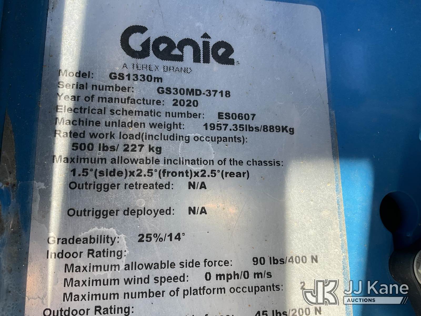 2020 Genie GS-1330m Self-Propelled Scissor Lift, s/n GS30MD-3718, Battery electric, with 13 ft. platform height, (Moves & Operates) (Low Battery) (Reads 240 hours) NOTE: This unit is being sold AS IS/WHERE IS via Timed Auction and is located in Shrewsbury, MA. Inspection & preview days for this unit are the 2 business days prior to the first day of items closing for this auction, item is located at 11 Fortune Blvd Shrewsbury, MA 01545 and hours of operations are 8a-4p. For pre-sale questions, please contact Rob Gifford @ (508) 864-4126. (Buyer is responsible for removal. Assistance by consignor or JJ Kane Auctioneers is not assured.)