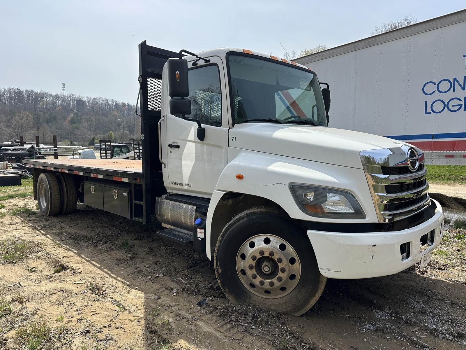 6 Cylinder Turbo Diesel Engine, Automatic Transmission, Air Brakes, Spring Ride Suspension, Approx. 20'x8' Flatbed, (4) Underbed Toolboxs, Day Cab, Heat, AC, Radio, Heated Power Mirrors, Power Windows, Trailer Brakes, Cruise Control, Air Ride Seats, Exhaust Braking, 11R22.5 Tires