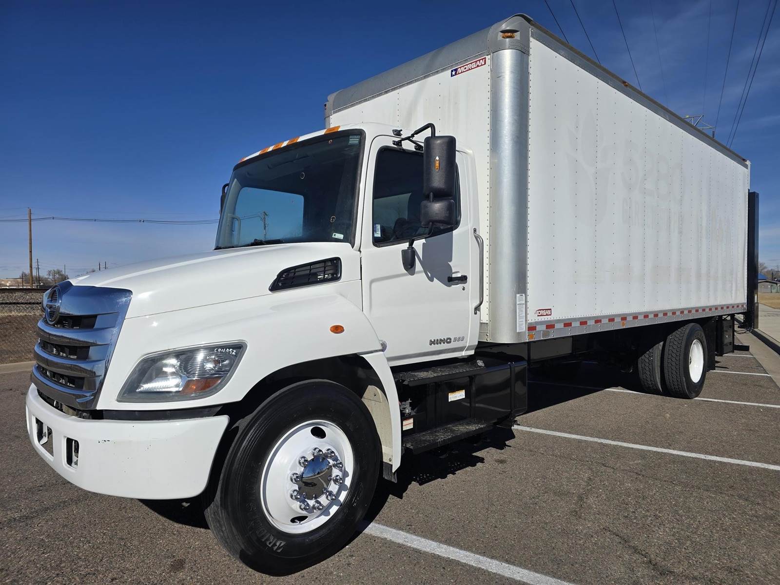 NO CDL REQUIRED. This 2020 Hino 268A box truck has 99,585 miles and 3,404 hours and is powered by a 230 HP Hino J08E-WU diesel engine paired with an Allison 2200 HS 6-speed automatic transmission. Equipped with a 24 ft aluminum box, liftgate, and roll-up rear door, this Class 6 straight truck is ideal for delivery, moving, freight, and fleet use. Features a 240" wheelbase, spring suspension, single rear axle, and comfortable cab with cruise control and excellent A/C.