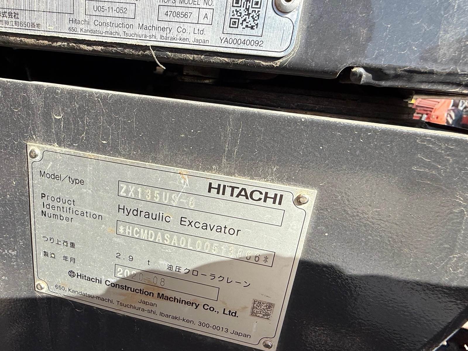 2020 Hitachi ZX135US-6 Excavator