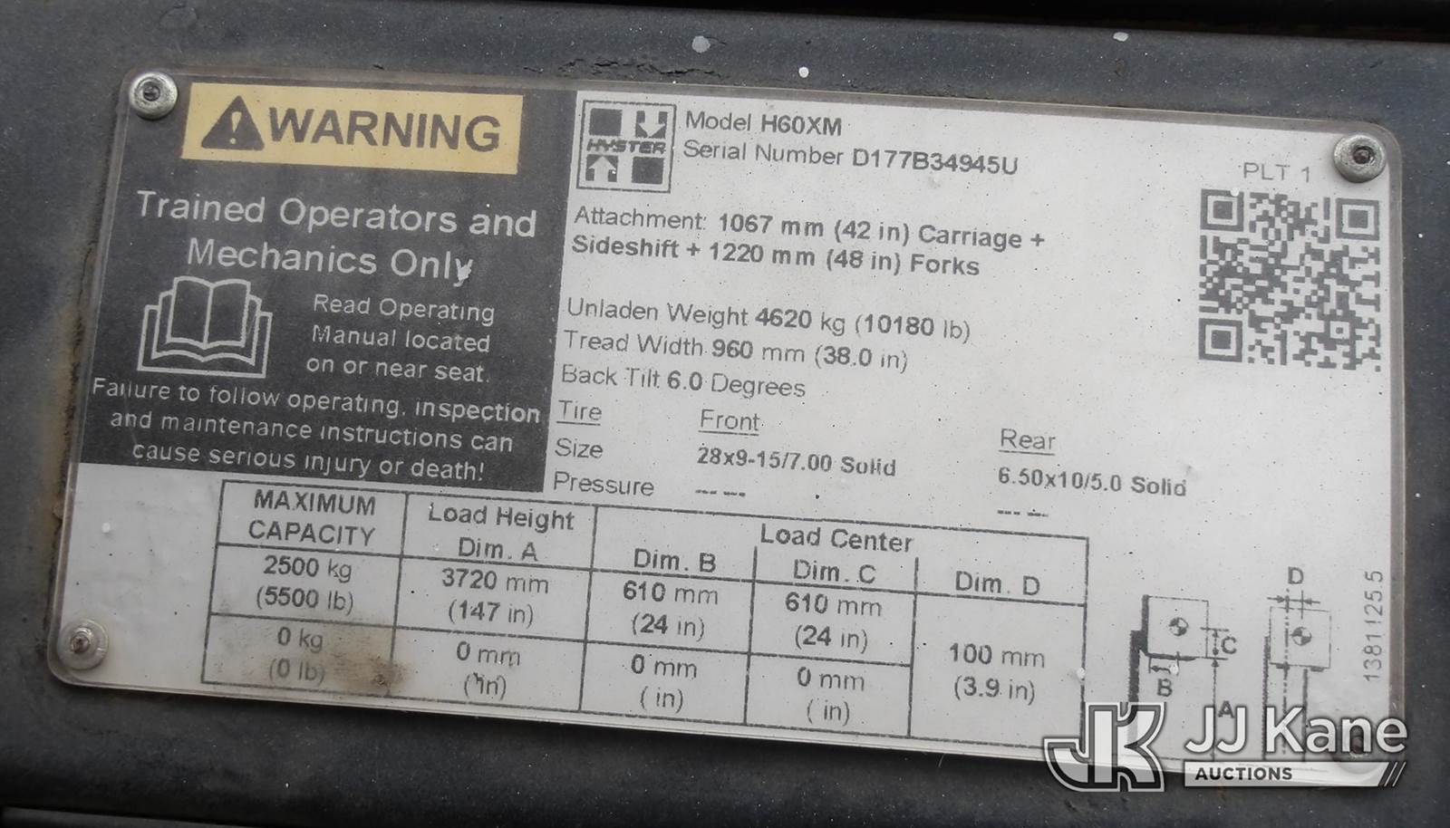 2020 Hyster H60XM Pneumatic Tired Forklift, s/n D177B34945U, diesel, Shuttle, with 5500 lb capacity, 147 in mast height, 3-stage mast, side shift & ROPS, (Runs, Operates) (Radiator Issue, Broken Seatbelt) (Reads 11,937 hours) NOTE: This unit is being sold AS IS/WHERE IS via Timed Auction and is located in Birmingham, AL. Alabama Auctioneer Michael Whitebread - License # 5592 (Buyer is responsible for removal. Assistance by consignor or JJ Kane Auctions is not assured.)