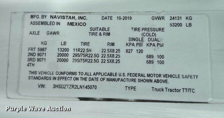VIN: 3HSDZTZR2LN145070