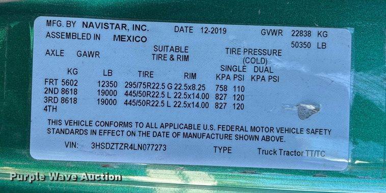 VIN: 3HSDZTZR4LN077273