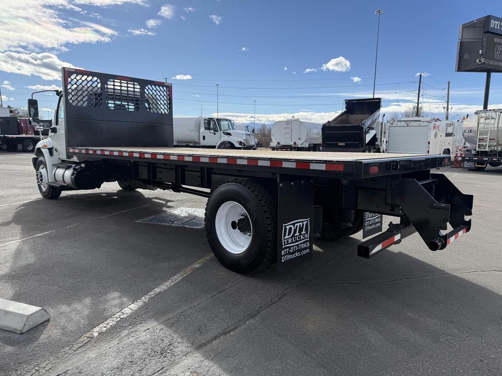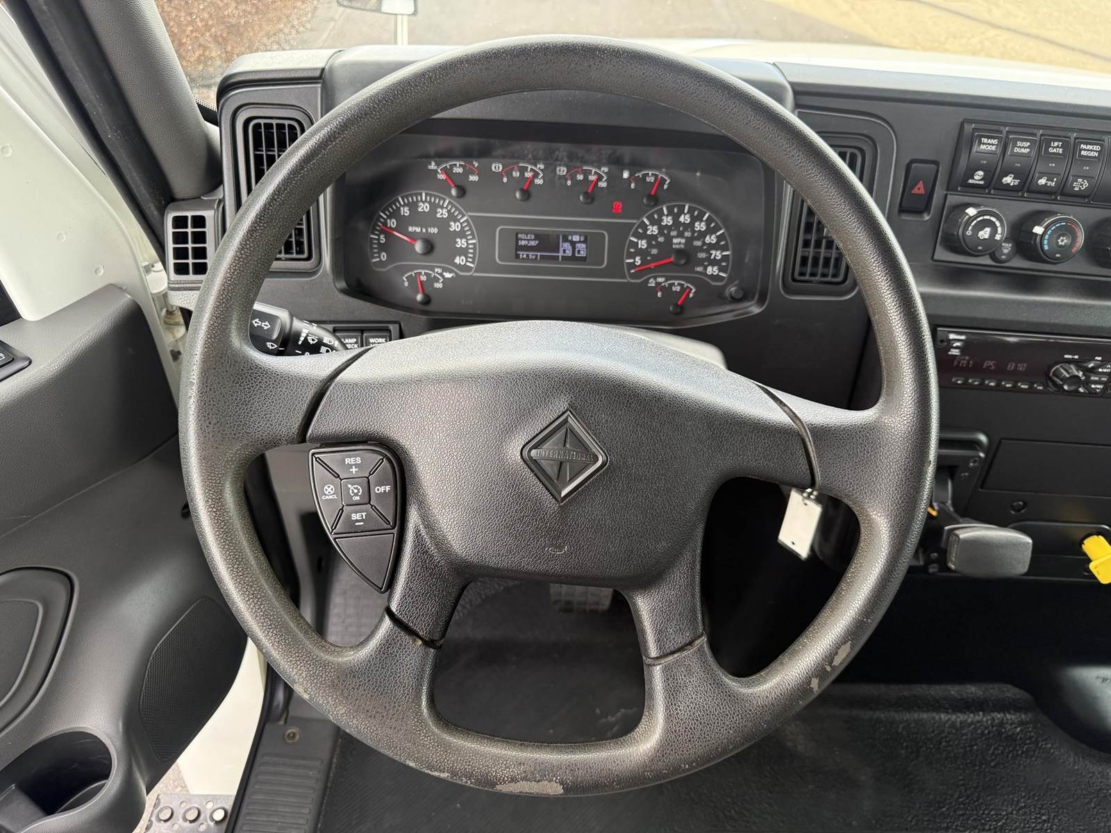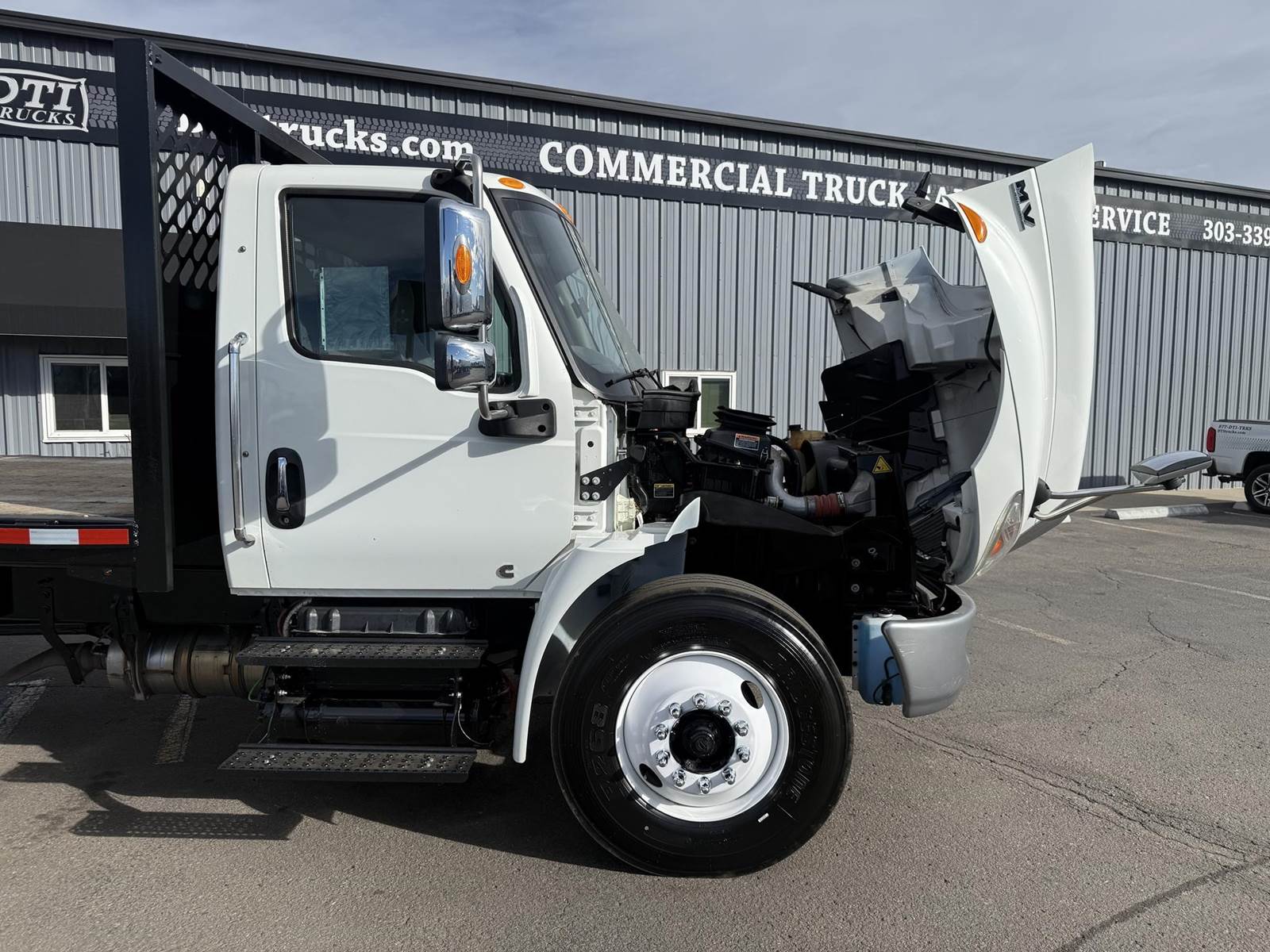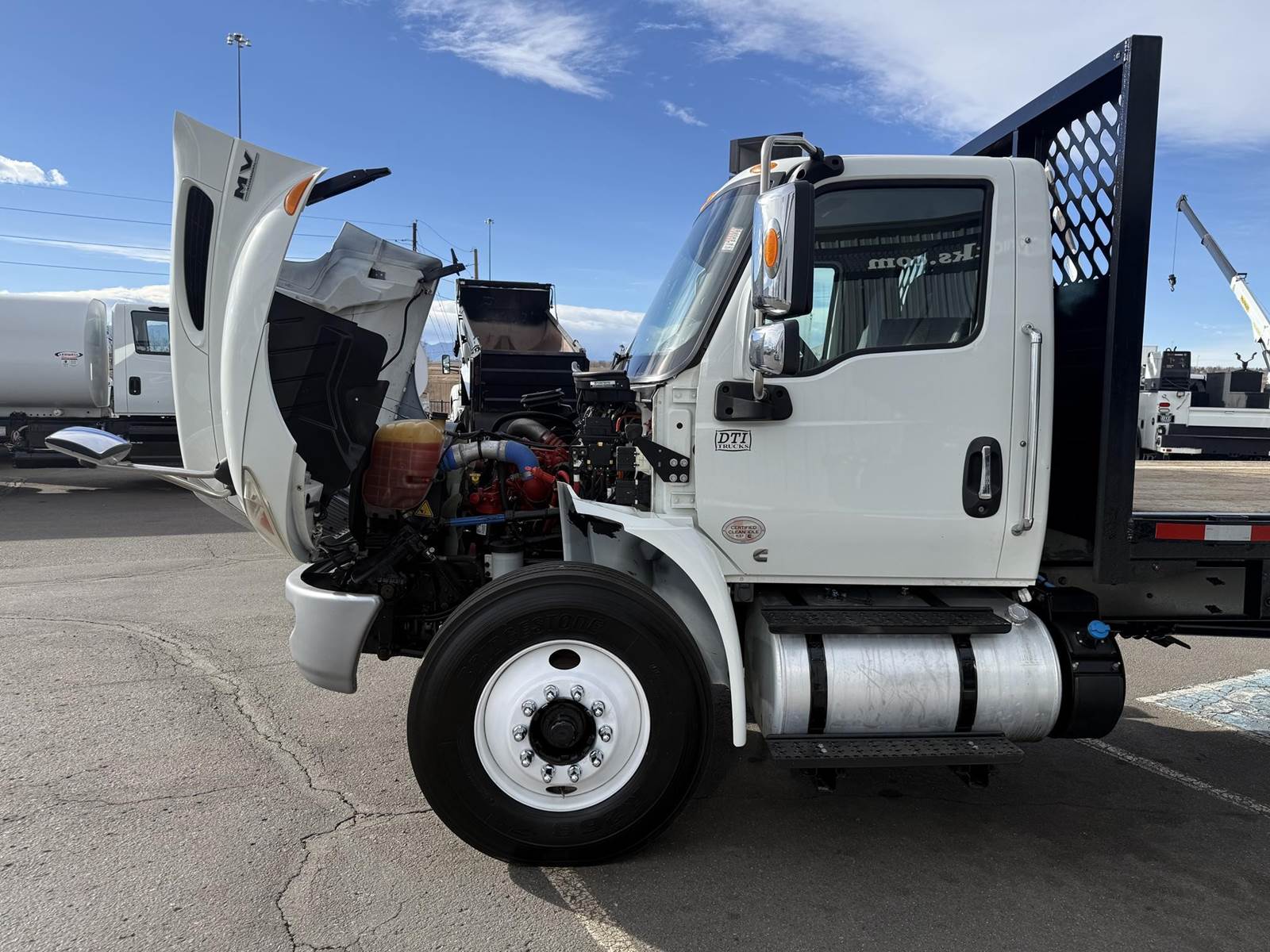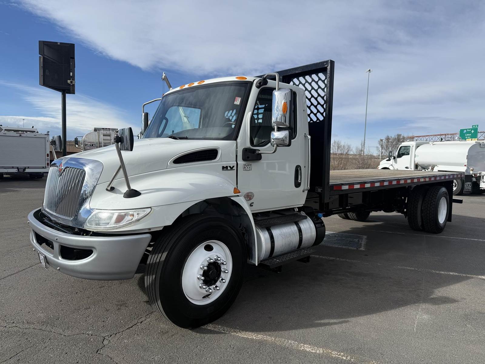 2020 International MV607 Single Axle Flatbed Truck, 6.7L Cummins Turbo Diesel Engine, 200 HP, Allison 5 Speed Automatic Transmission, 109,267 Miles & 5,242 Engine Hours, 25,999 LB GVWR (10K Steer Axle, 21K Drive Axle), NO CDL REQUIRED, 258” Wheel Base, 192” CTA, Air Ride Suspension With Dump Valve, 4.88 Axle Ratio, Air Brakes, 11R22.5 Tires All Mounted On Steel Wheels, 70 Gallon Aluminum Diesel Fuel Tank, Block Heater, CARB Compliant, Air Conditioning, Tilt Steering Wheel, Cruise Control, Bluetooth Radio, Power Windows & Locks, Power & Heated Mirrors, Air Ride Driver Seat, Bench Passenger Seat, 20’ Wood Deck Flatbed, 96” Wide, (4) Sliding Winches, (1) Fixed Winch, Donkey Forklift Mount. This International Flatbed Truck Is Available At DTI Trucks In Denver, CO. Stock #18009D. Call Or Text Brent For More Information (303) > 598 > 1923
