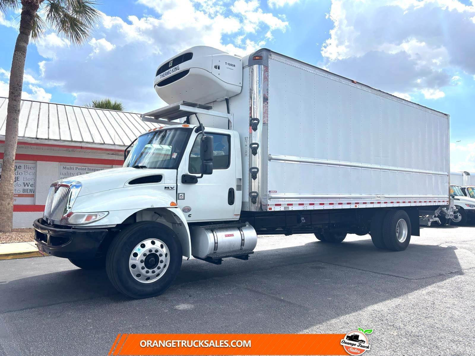26FT REEFER BOX TRUCK * 2020 INTERNATIONAL MV607 * ENGINE CUMMINS B6.7L * ENGINE HOURS: 5,502hrs * AUTOMATIC TRANSMISSION * THERMO KING UNIT: T-1080R / 6,820hrs * GVW 25,999 * COLOR WHITE * WHEELBASE 272 * MILES 253,614 * BODY DIMENSIONS: 103x102x26 * LIFT GATE *