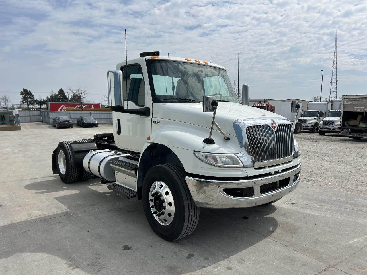 2020 International MV607 Single Axle Day Cab, Cummins L9 350HP Engine, Automatic 6 Spd Allison 3000 HS Transmission, Air Ride Suspension, 33,000 GVW, 12,000# MFS12143ANN403 Front Axle, 23,000# Meritor RS23160 Rear Axle, 4.30 Ratio, Full Diff Lock, 160" Wheelbase, 295/75R22.5 Tires (Front: 21/32 - Rear: 16/32), Aluminum Wheels, 70/70 Aluminum Fuel Tanks, Air Brakes 50%, AC, Cruise, Engine Brake, 5th-Wheel Slide, Power Locks, Power Windows, Power Steering, Tilting, Air Ride/Fixed Seats, Heated/Power Mirror