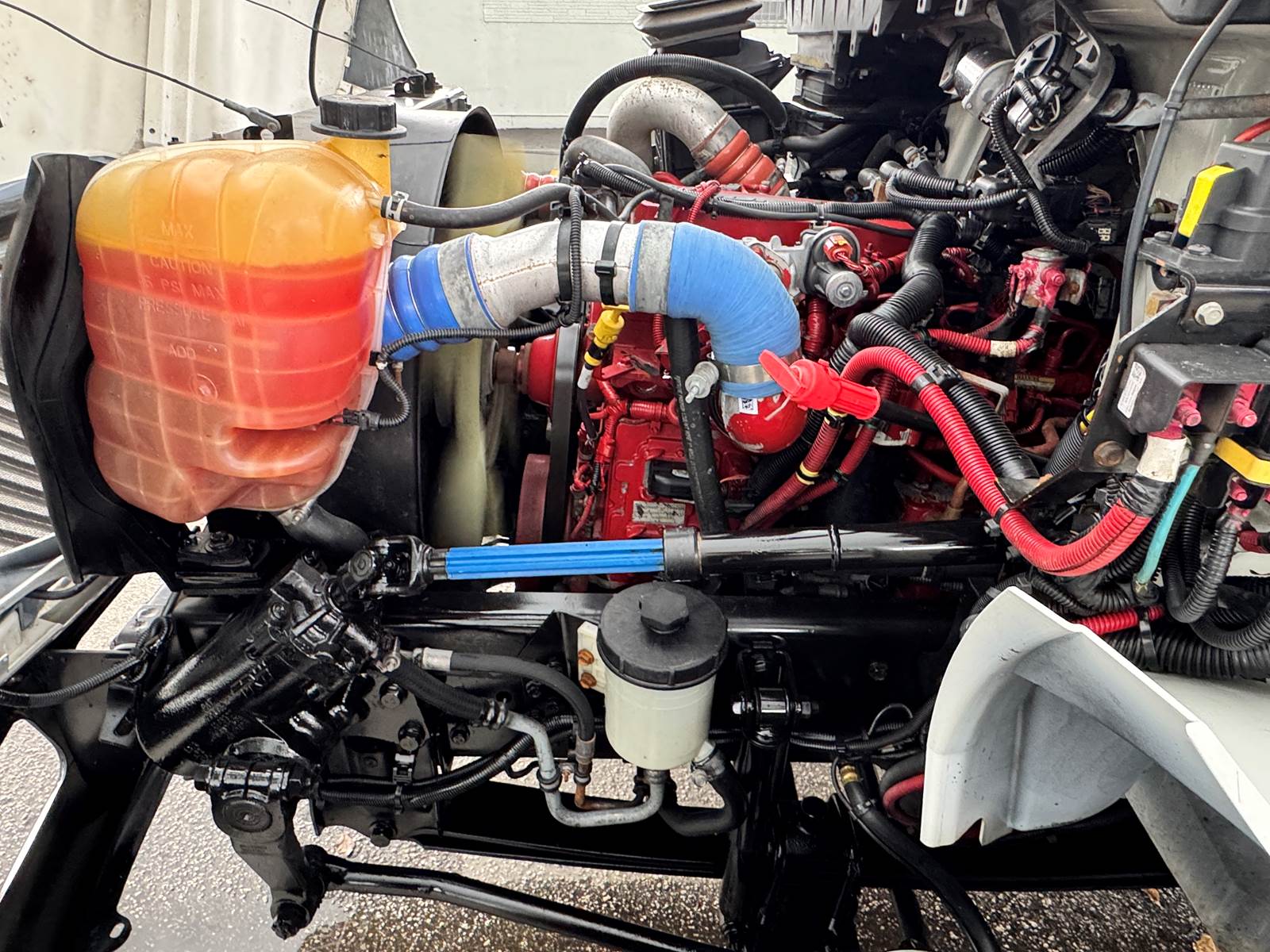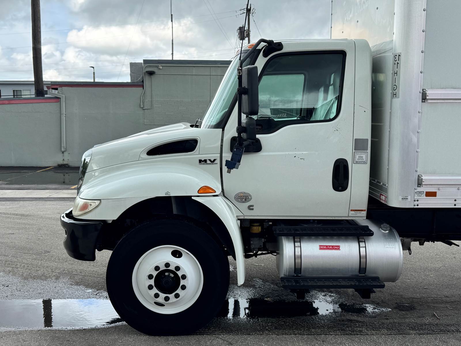 The 2020 International MV607 is a medium-duty box truck built for versatility in regional and local freight operations. It is powered by a Cummins ISB 6.7L diesel engine rated at 220 horsepower, paired with an Allison 2200RDS 6-speed automatic transmission for dependable and efficient performance. With a 25,999 lb GVWR and a 272-inch wheelbase, this non-CDL truck is equipped with a 10,000 lb front axle and a 17,500 lb rear axle, supported by air ride suspension for balanced handling and stability. A 70-gallon aluminum fuel tank ensures strong range between refueling stops