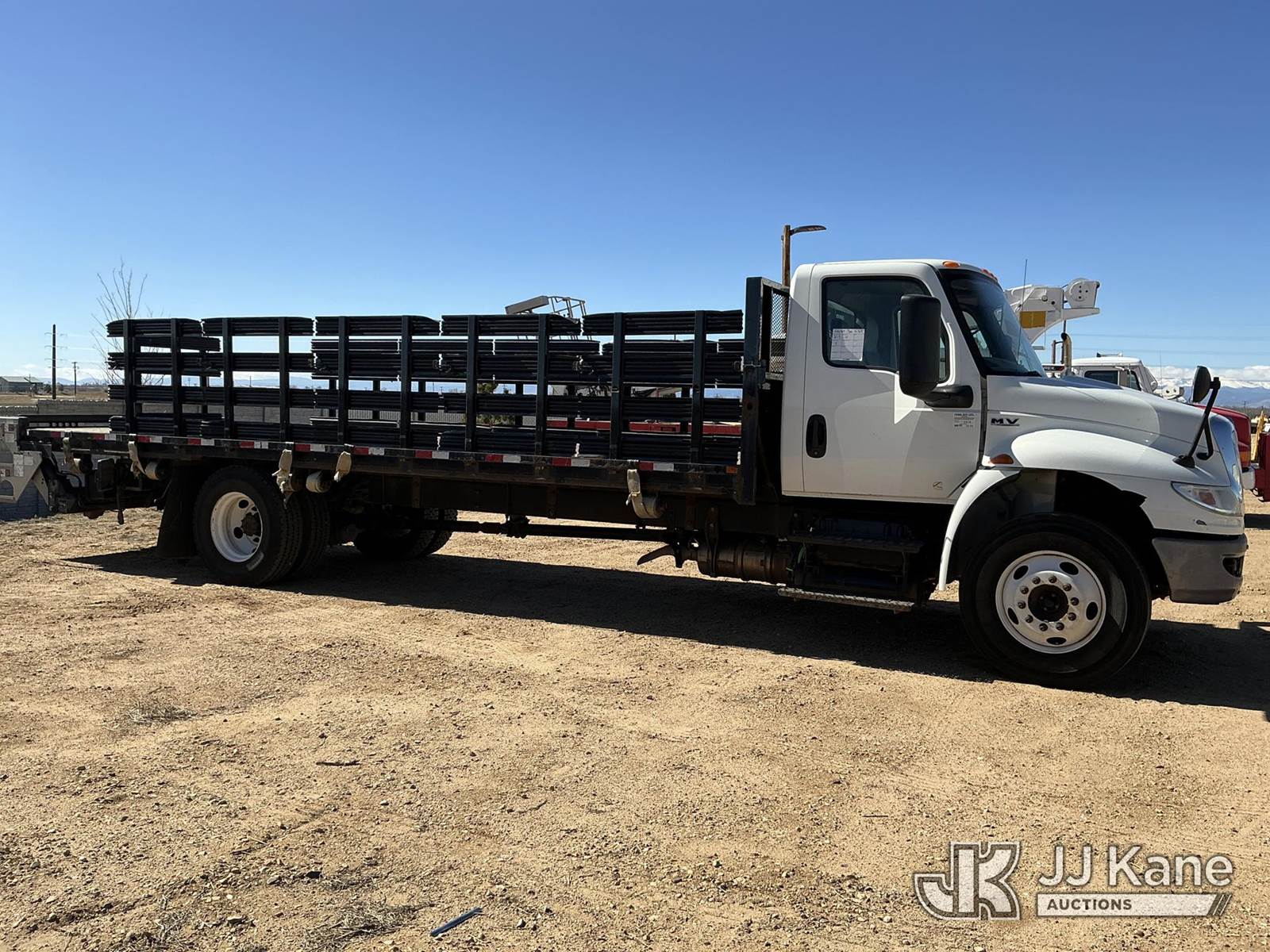 2020 International MV607 Flatbed Truck, Cummins 6.7L diesel, Auto, with Maxon Tuk-A-Way lift gate - S/N:1906505346, 25ft by 8ft flatbed, (242,782 miles) (Runs, Moves & Lift Operates) (Cracked Windshield, Check Engine Light On, Intermittently Shuts Down In Idle) (No Emissions Provided, See Bidder Agreement) (Non Drive Away Removal Only: Safety Inspect) (Reads 7,509 hours) This is a Titled Item NOTE: This unit is being sold AS IS/WHERE IS via Timed Auction and is located in Fort Lupton, CO. Inspection & preview days for this unit are the 2 business days prior to the first day of items closing for this auction, item is located at 2105 Northland Dr Fort Lupton, CO 80621 and hours of operations are 8a-4p. For pre-sale questions, please contact Dakota Hoffman @ (720) 621-0786. Dealer License Number 47109. (Buyer is responsible for removal. Assistance by consignor or JJ Kane Auctions is not assured.)