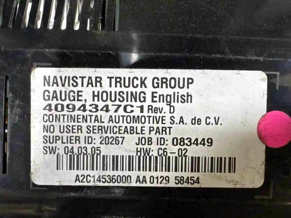 (Used) 2020 International MV607, INSTRUMENT CLUSTER- Part Number: A2C14536000AA, Gauges: Coolant Temperature, Brake Air Pressure (1), Brake Air Pressure (2), Fuel Level, RPM, Engine Oil Pressure, MPH, Def Level, For more information about this item, give us a call. We ship Worldwide! (CRG HEAVY TRUCK PARTS) 929 W PULASKI HWY ELKTON, MD 21921, Engine Make: Cummins, Engine Model: ISB 260; B6.7