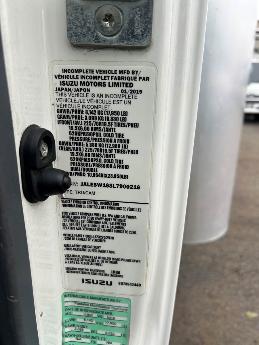 The 2020 Isuzu NQR 22' Box Truck is a reliable, diesel-powered hauler built to handle medium-duty delivery tasks with efficiency and durability. Powered by an Isuzu 4HK1-TC 5.2L turbocharged diesel engine, it delivers 215 horsepower and 452 lb-ft of torque, paired with an Aisin A465 6-speed automatic transmission with double overdrive for smooth, fuel-efficient performance. With a 17,950 lbs. gross vehicle weight rating (GVWR) and a 176-inch wheelbase, this Class 5 truck features a spacious 22-foot box, ideal for logistics, moving services, or general freight transport. Its low-cab-forward design provides excellent visibility and a tight turning radius, perfect for navigating urban routes or tight loading zones. The driver’s cab seats up to three and is designed for comfort, with air conditioning, power windows, and an ergonomic layout for long shifts. Strong, dependable, and built to work, this 2020 Isuzu NQR is a top choice for businesses seeking a versatile, high-performance hauler.