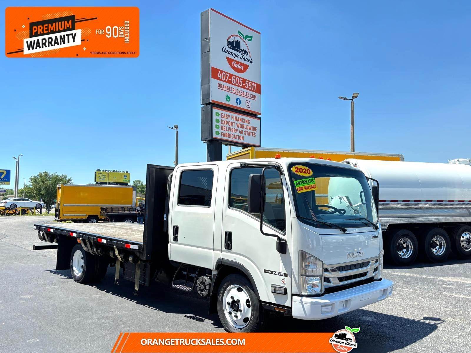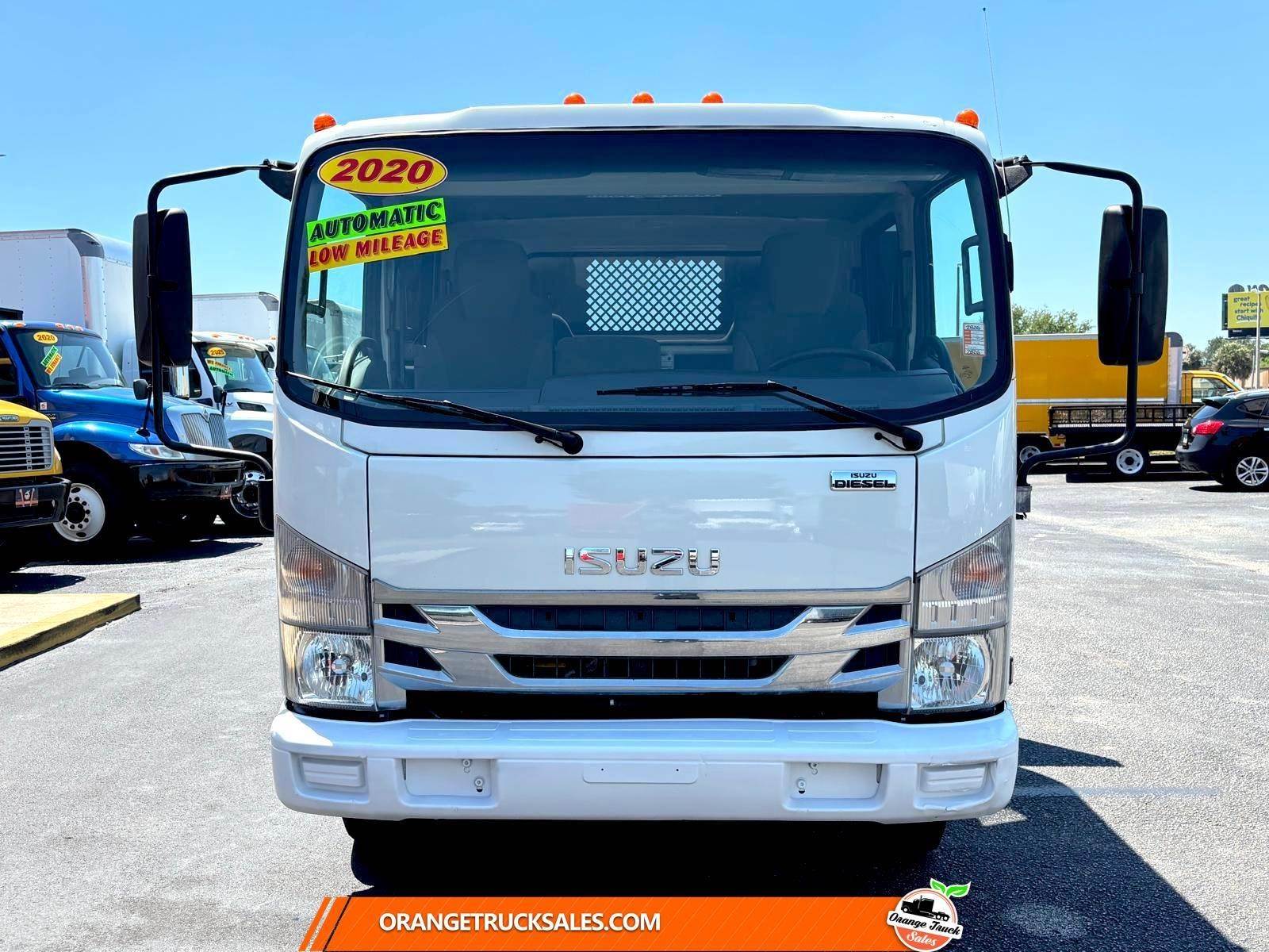 16 FT FLATBED CREW CAB TRUCK * 2020 ISUZU NRR * ENGINE 4HK1TC 5.2L * 210HP * DIESEL * A465 AUTOMATIC TRANSMISSION * GVWR 19,500 * SPRING SUSPENSION * MILEAGE 105,369 * WHEEL BASE 168 * COLOR WHITE *