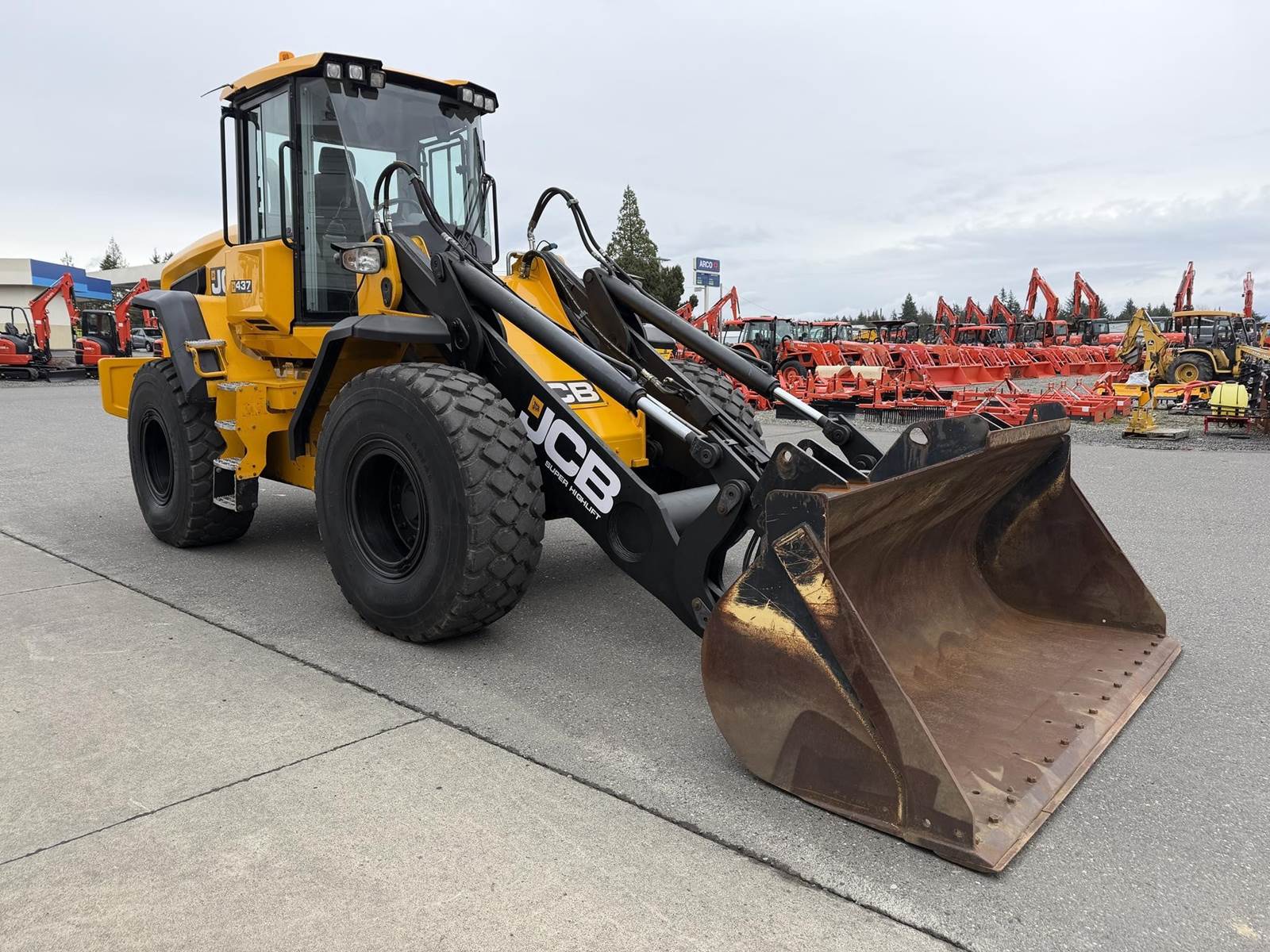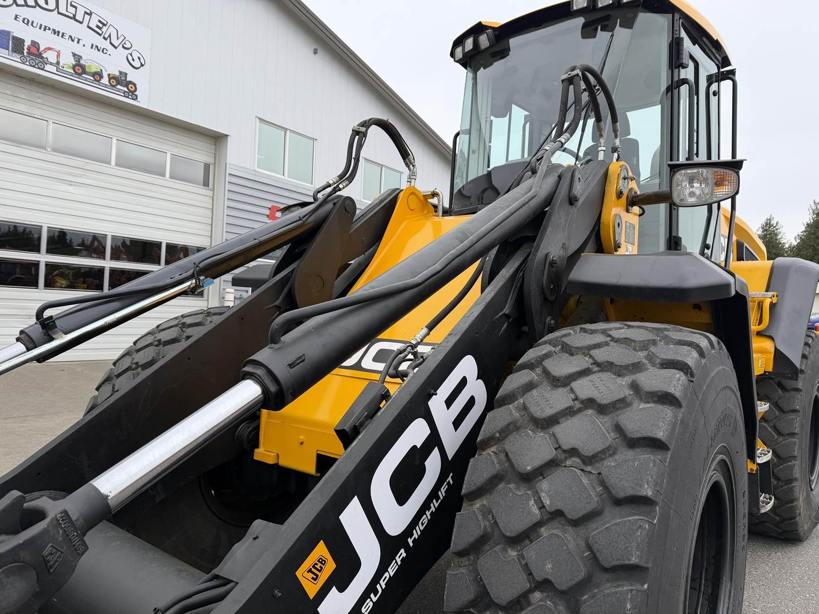 2020 JCB 437 AGRI Wheel Loader - very nice late model extra high lift quick hitch tool carrier to 14’8” high! Brand new radial tires. Super quiet, super smooth, rear camera. 3.5 yard high lift loader with 3rd function and Q-Fit. Starts and runs like new but half price!