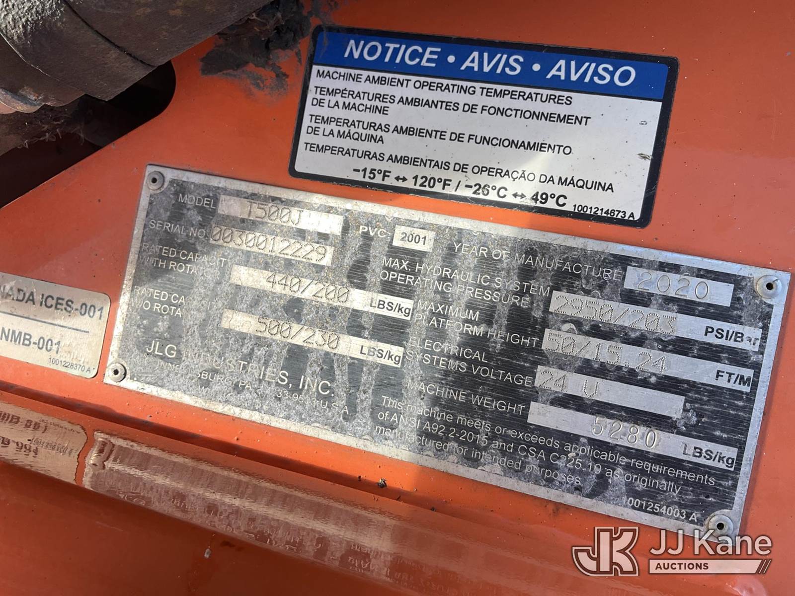 2020 JLG T500J Portable Man Lift, s/n 30012229, 24v electric, (Missing Upper Controls, Batteries Not Charged, Condition Unknown) NOTE: This unit is being sold AS IS/WHERE IS via Timed Auction and is located in Rome, NY. Inspection & preview days for this unit are the 2 business days prior to the first day of items closing for this auction, item is located at 5835 Success Dr Rome, NY 13440 and hours of operations are 8a-4p. For pre-sale questions, please contact Ryan Jackson @ (315) 749-3790 or Ryan.Jackson@jjkane.com. (Buyer is responsible for removal. Assistance by consignor or JJ Kane Auctions is not assured.)