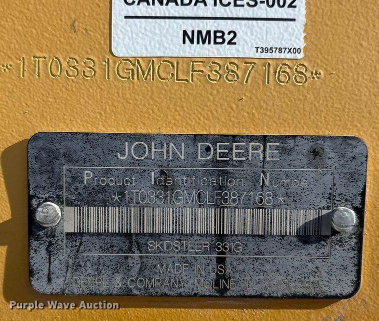 2020 John Deere 331G tracked skid steer loader