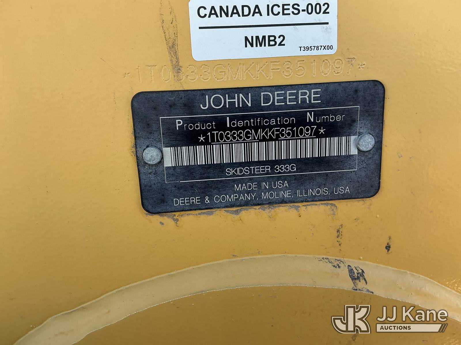 2020 JOHN DEERE 333G Skid Steer Loader, s/n 1T0333GMKKF351097, Hydrostatic, diesel, with aux hydraulics, rubber tracks, ROPS, Electrohydraulic Control Panel Start, No Attachments (Not Running, Condition Unknown, Safety Bar Disassembled, Power to Control Panel) (Non Drive Away Removal Only: Equipment) (No Emissions Provided, See Bidder Agreement) NOTE: This unit is being sold AS IS/WHERE IS via Timed Auction and is located in Fort Lupton, CO. Inspection & preview days for this unit are the 2 business days prior to the first day of items closing for this auction, item is located at 2105 Northland Dr Fort Lupton, CO 80621 and hours of operations are 8a-4p. For pre-sale questions, please contact Dakota Hoffman @ (720) 621-0786. Dealer License Number 47109. (Buyer is responsible for removal. Assistance by consignor or JJ Kane Auctions is not assured.)
