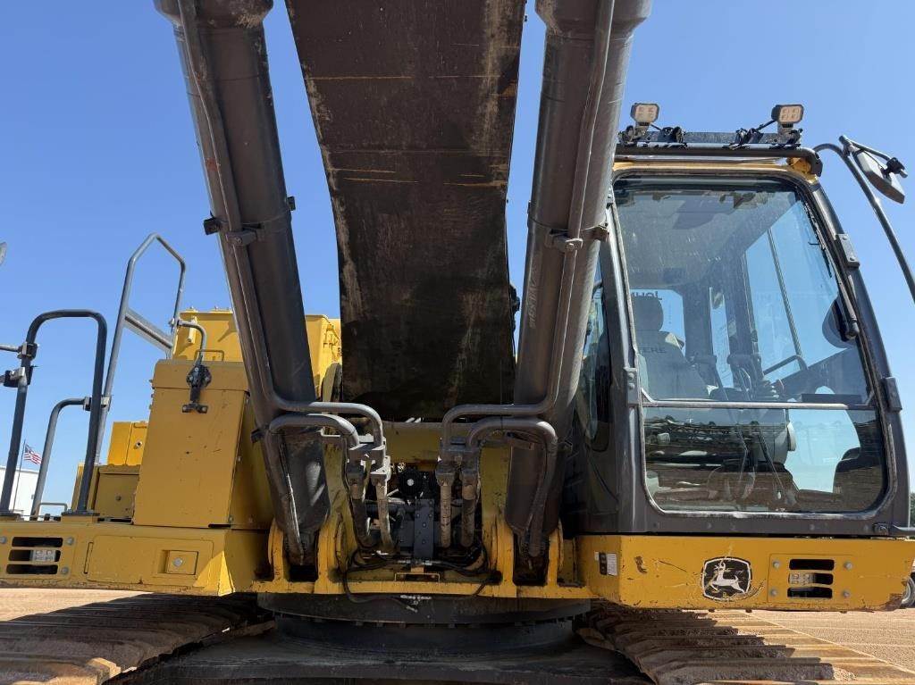 Location: Marathon, WI 463 hp John Deere Turbo Diesel Engine Hydrostatic 2 Speed Drive, EROPS, Joystick Control, Heat, A/C, Radio, Rear Camera, Approx 36" Track Pads, Approx 148" Overall Width, Lube System, Removable Counter Weight, Approx 7’ Rockland Bucket Width, Short Stick, Operating Weight: 154,103 lbs (69.9 tons) Serial: 1FF670XALF690085 Hours Shown: 9866