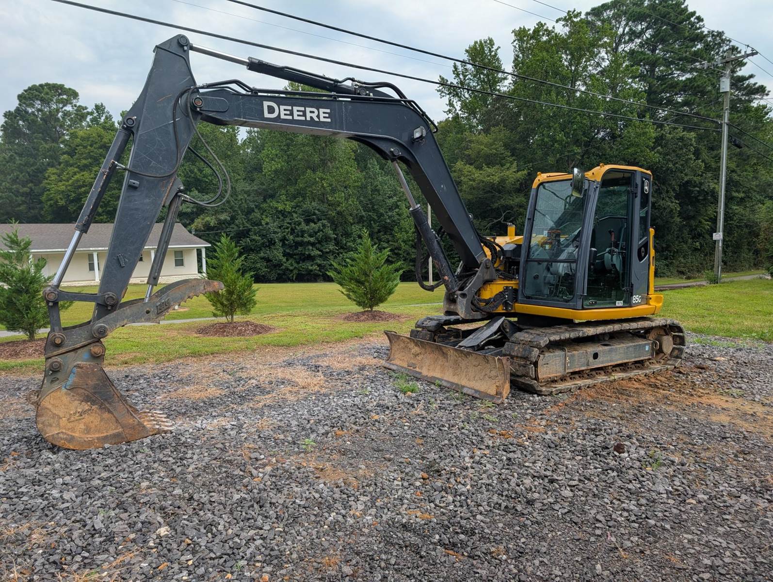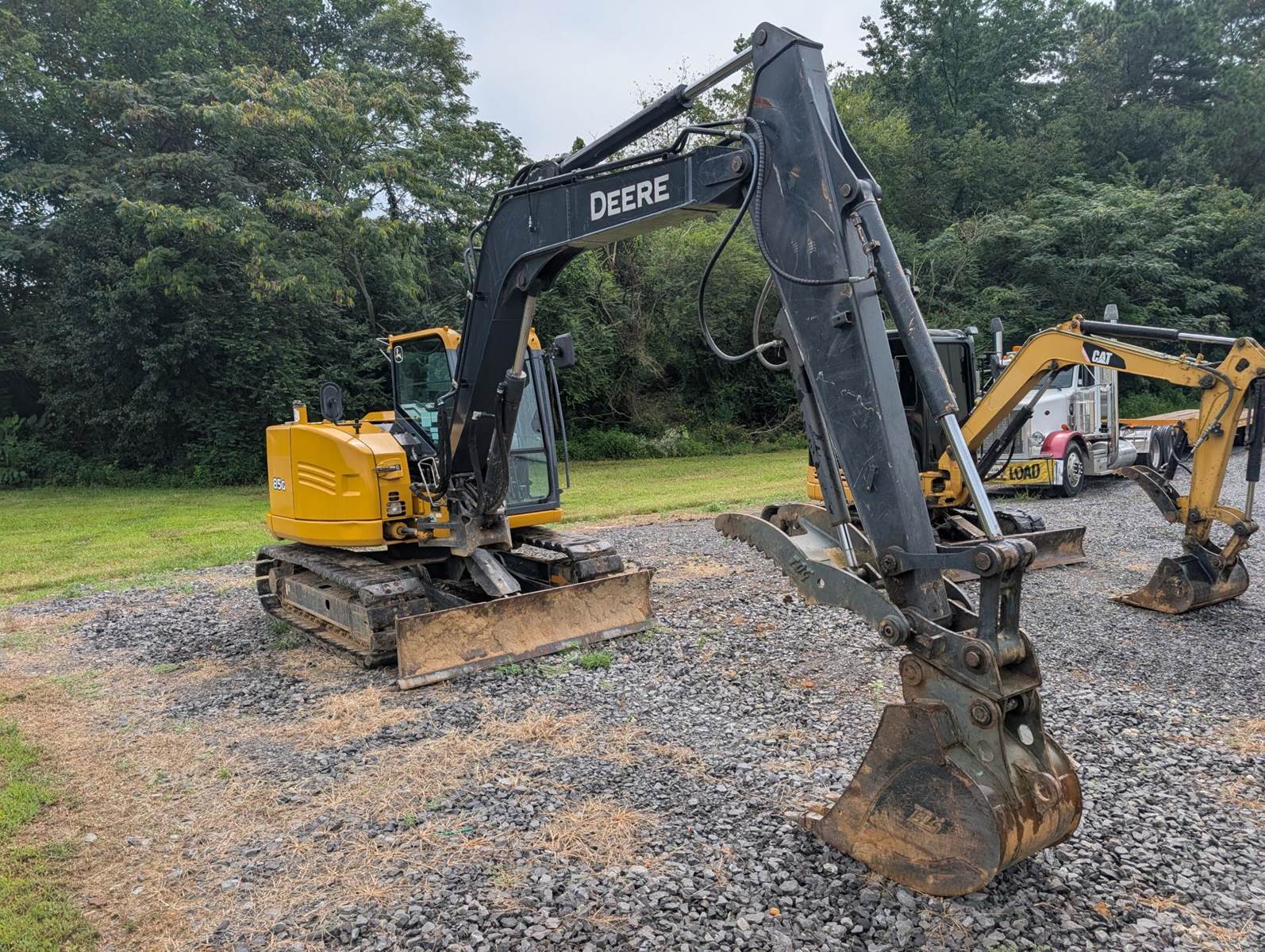 2020 Deere 85G Crawler Excavator, Engine: John Deere Turbo, 69 HP, Crawler excavator, mini excavator, compact excavator, Drive: 2-Speed Hydrostatic, Tracks: 18" Steel with Rubber Pads, 24" Bucket + Brand New 36" Bucket, Quick Coupler, Main Pin Hydraulic Thumb, 86" Front Blade, Cab: Heat, AC, Radio, Extras: Well-maintained, versatile mid-size excavator ready for work